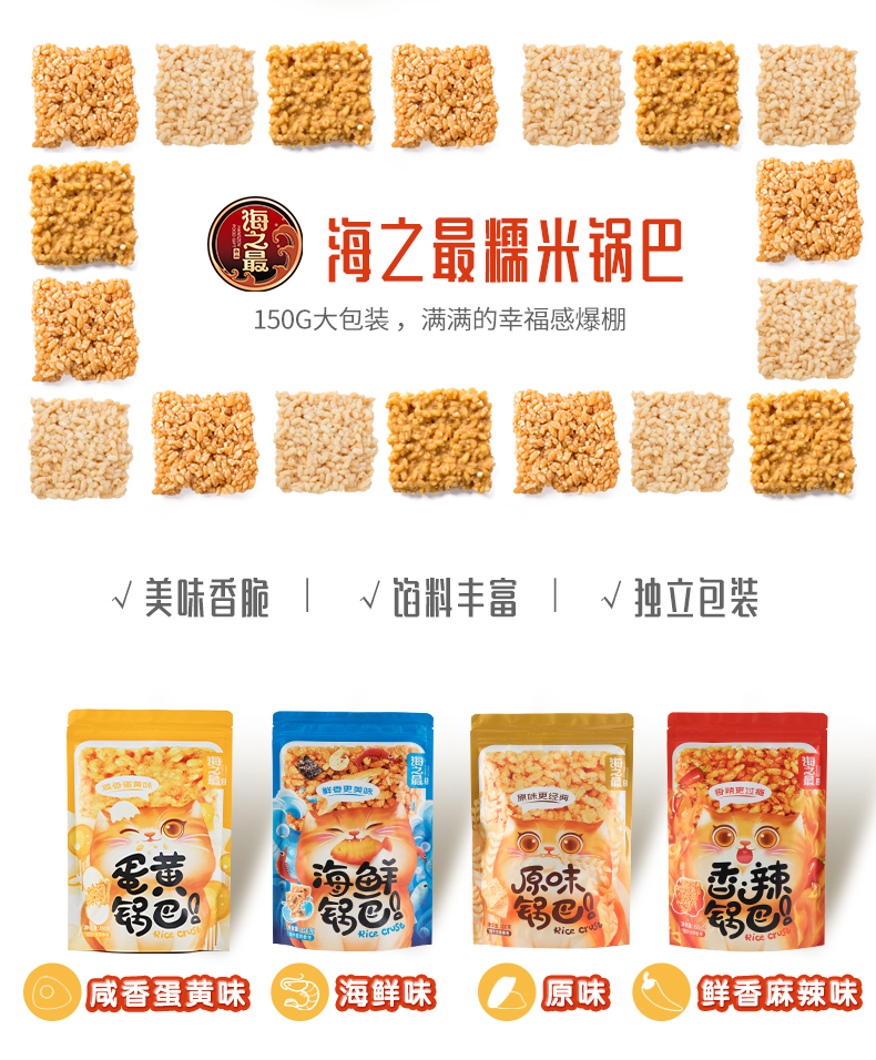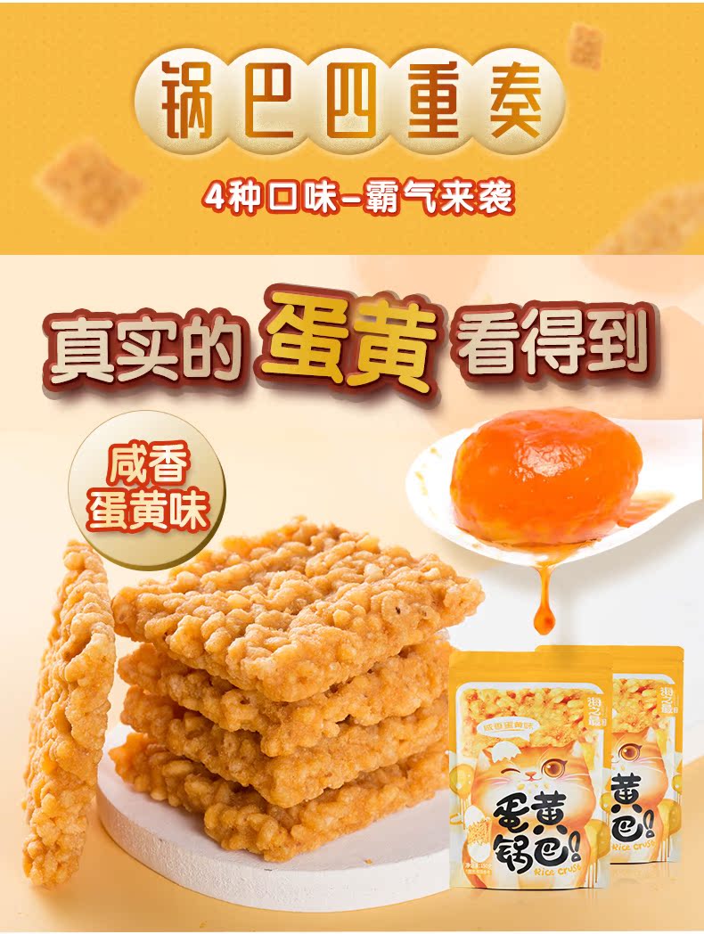 香脆可口,精选糯米、蛋黄、香辣、原味,手工制作,酥脆美味鲜香金黄,尽情享受美味时光,你一定没有吃过这么好吃的锅巴,海鲜,蛋黄,小米。爽到爆炸!