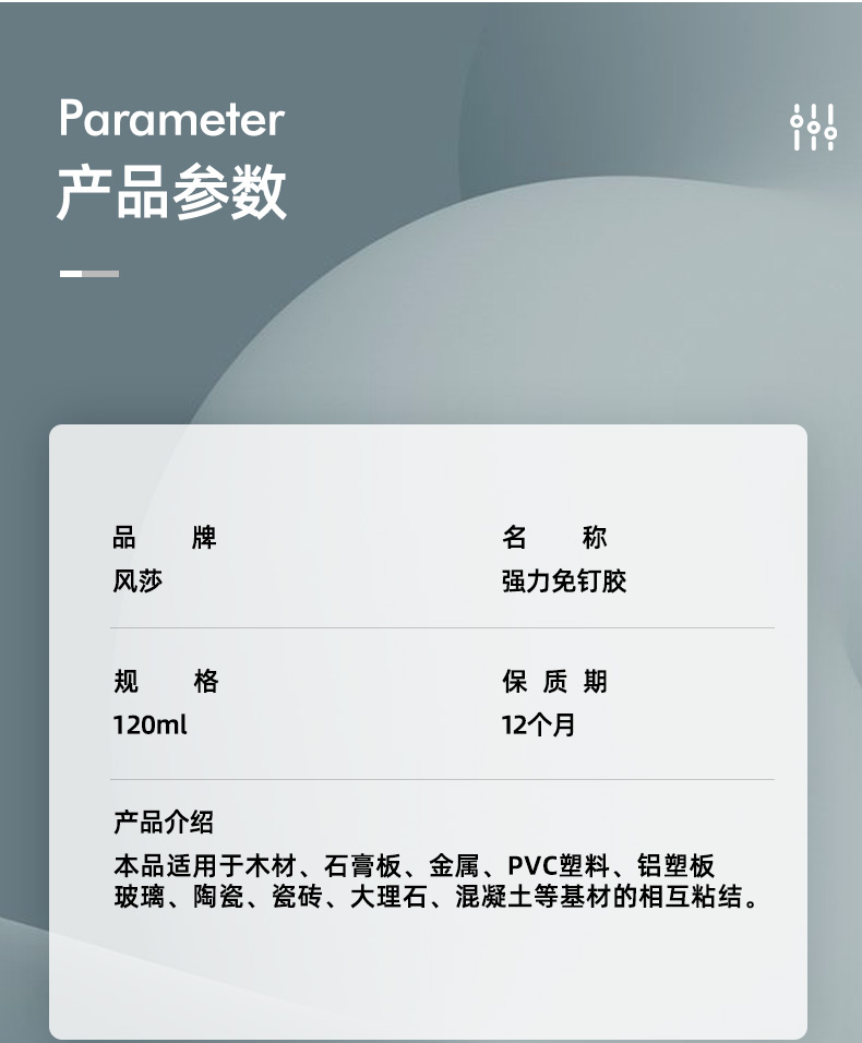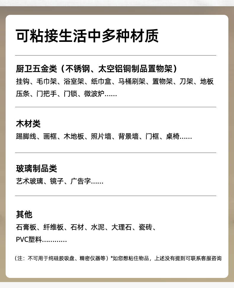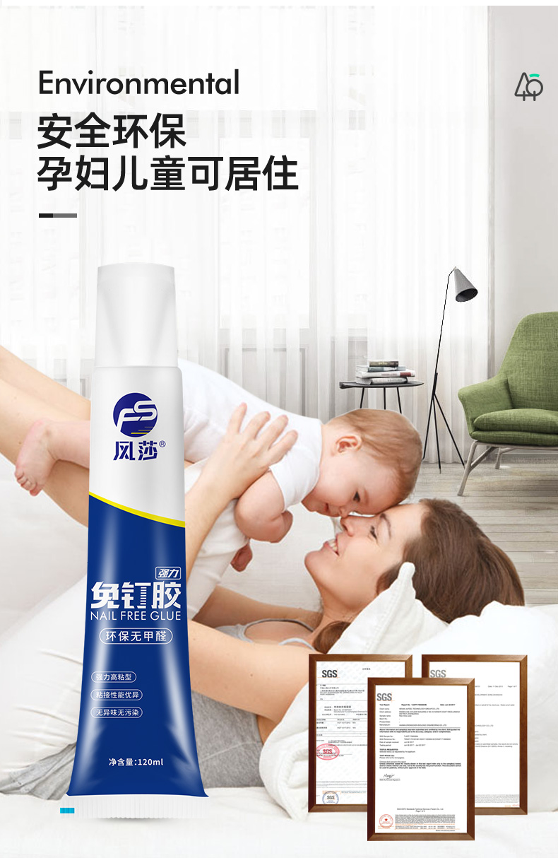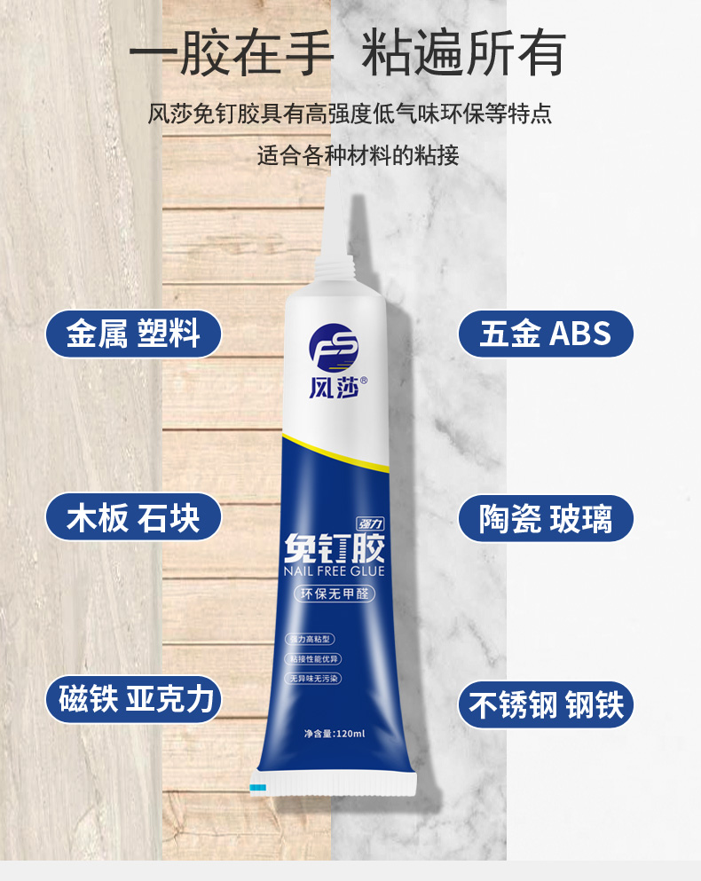 风莎免钉胶,具有高强度低气味,环保等特点,适合各种材料的粘接!