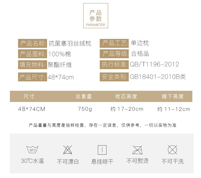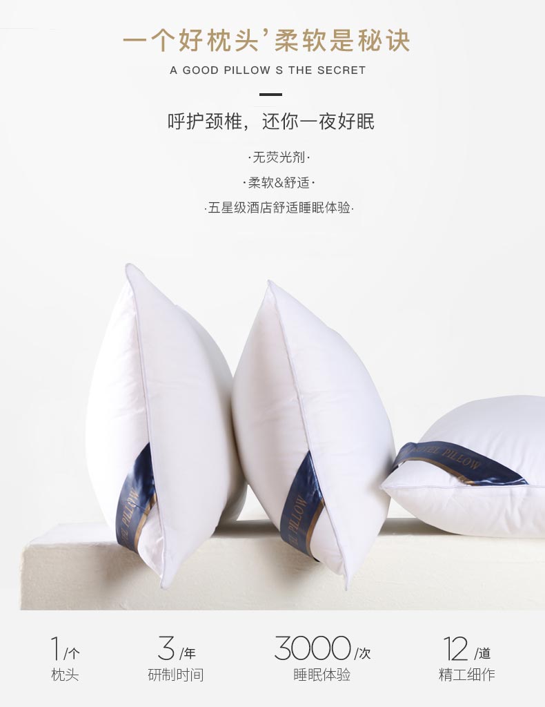 纯棉面料,无荧光剂;专为亚洲人设计,经12道精细工艺,柔软舒适,护颈保椎;给你五星级酒店睡眠体验~【赠运费险】
