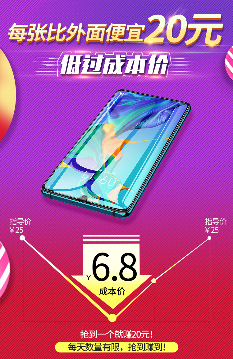神价神价!!2.5D圆润大弧边,不刮手,3层强化升级,防爆防刮花,不碎边,抗指纹,高清晰,通透清澈,好手机就用好膜,没有一点束缚,纯裸机手感!