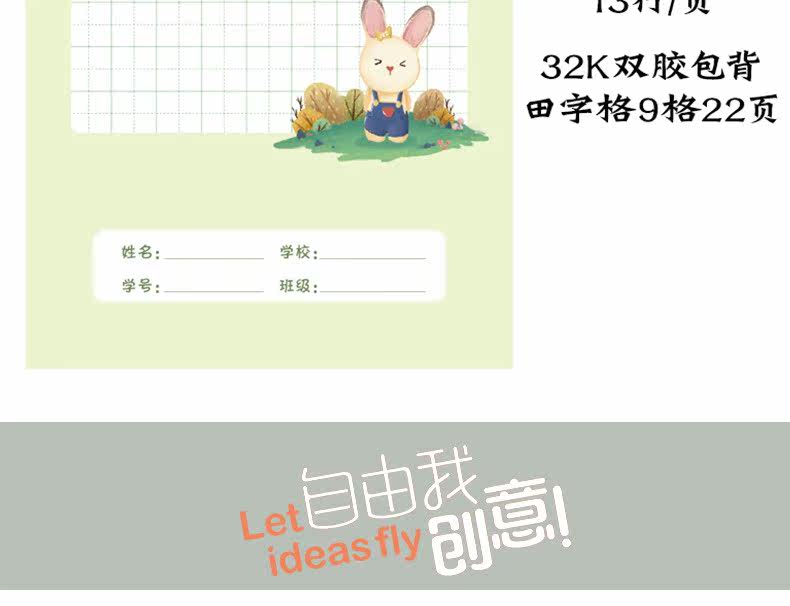 晨光作业本田字格竖翻上翻竖开柔光护眼拼音