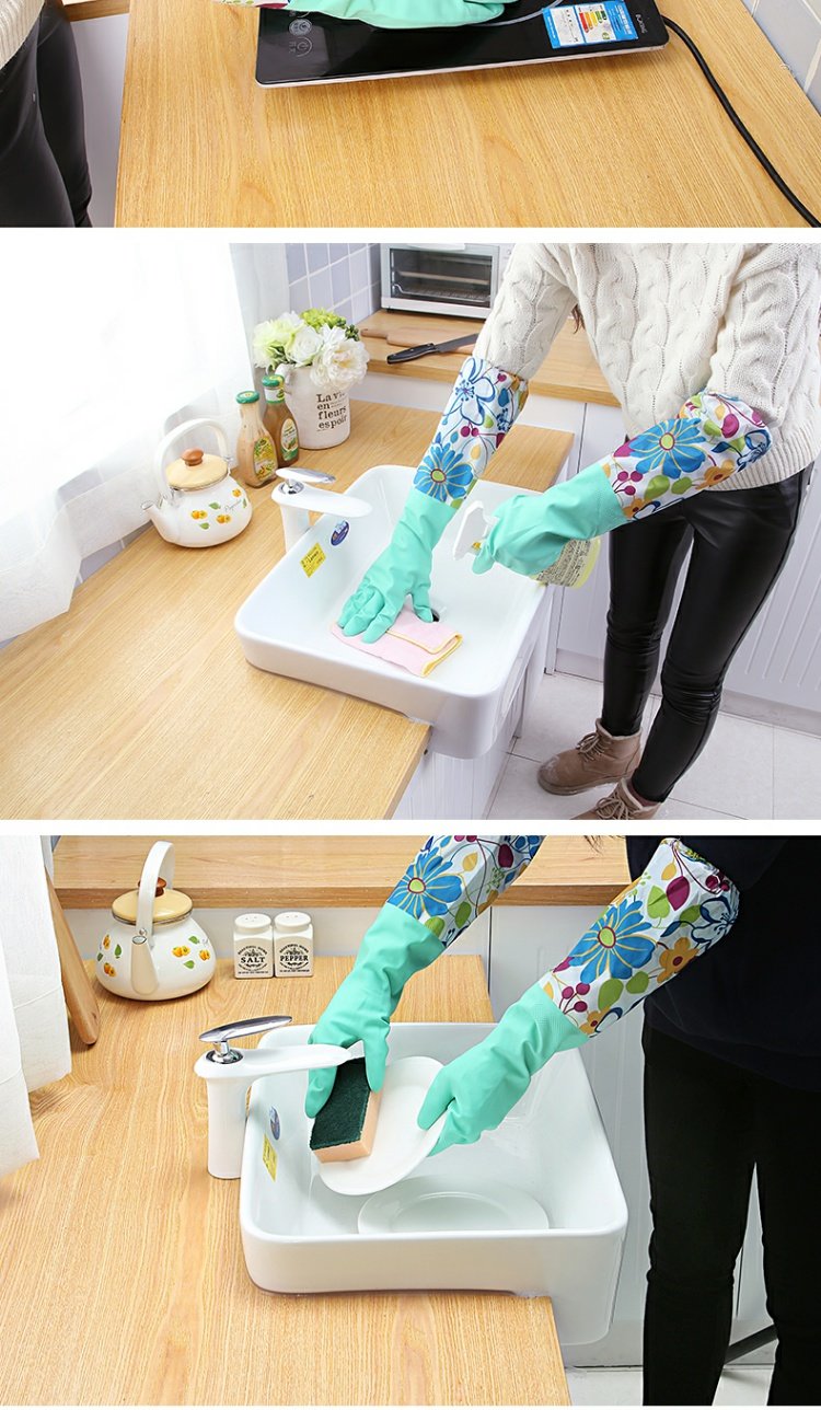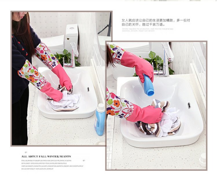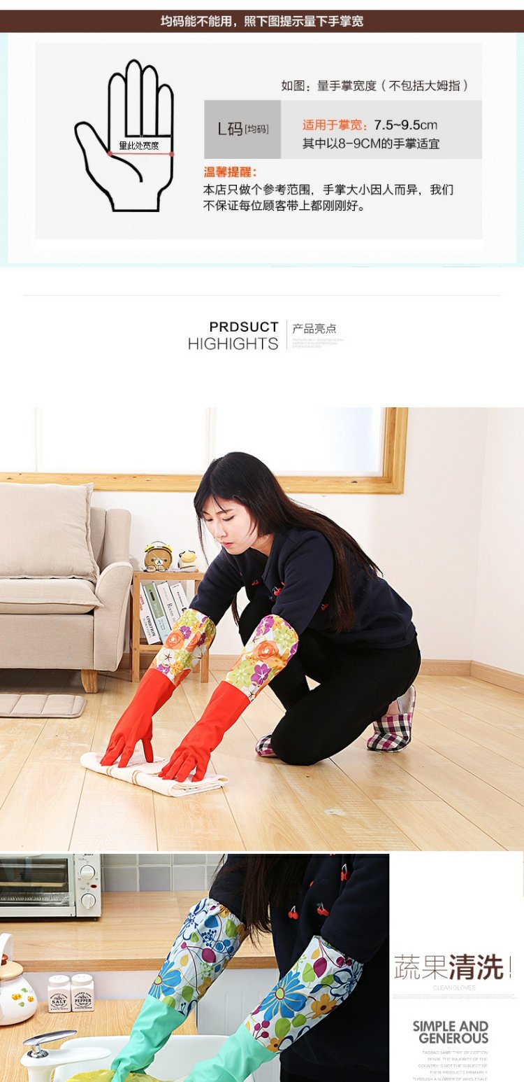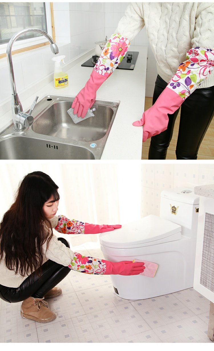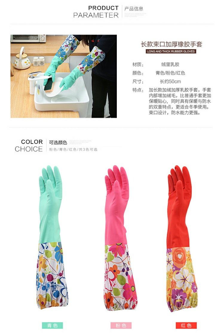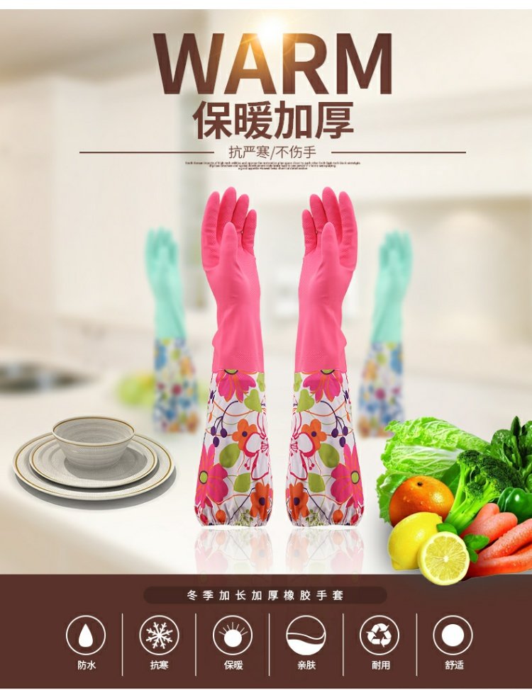 【迪迪龙】加长加绒束耐用防水手套,优质橡胶,无毒无异味,指尖加强,内部加绒冬天也不冰手,不脱落易穿戴,加厚更耐用,居家必备【赠送:运费险】