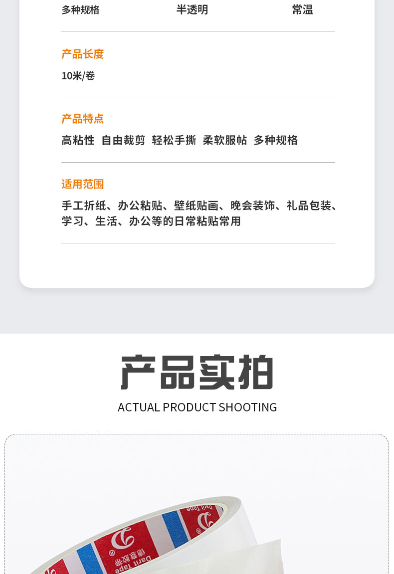 防水耐高温,粘性良好,易撕不留残胶,用的少,粘得牢,家里小孩子做手工经常用到,办公室更是必需品
