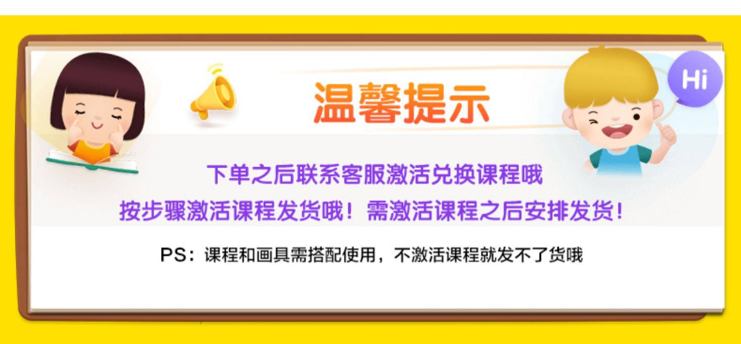 下单后记得联系激活课程!【赠送丰富绘画大礼盒】3~8岁是艺术脑发育黄金时期,正确提高孩子想象力;让孩子更有耐心,更加自信,更懂表达;