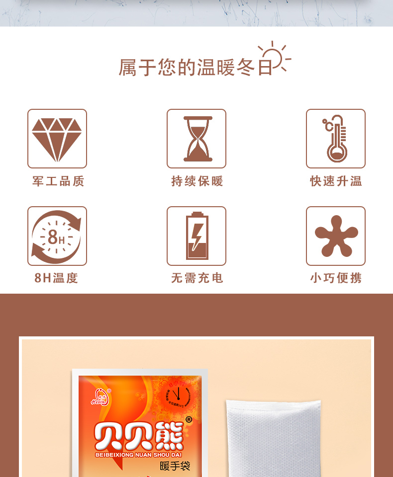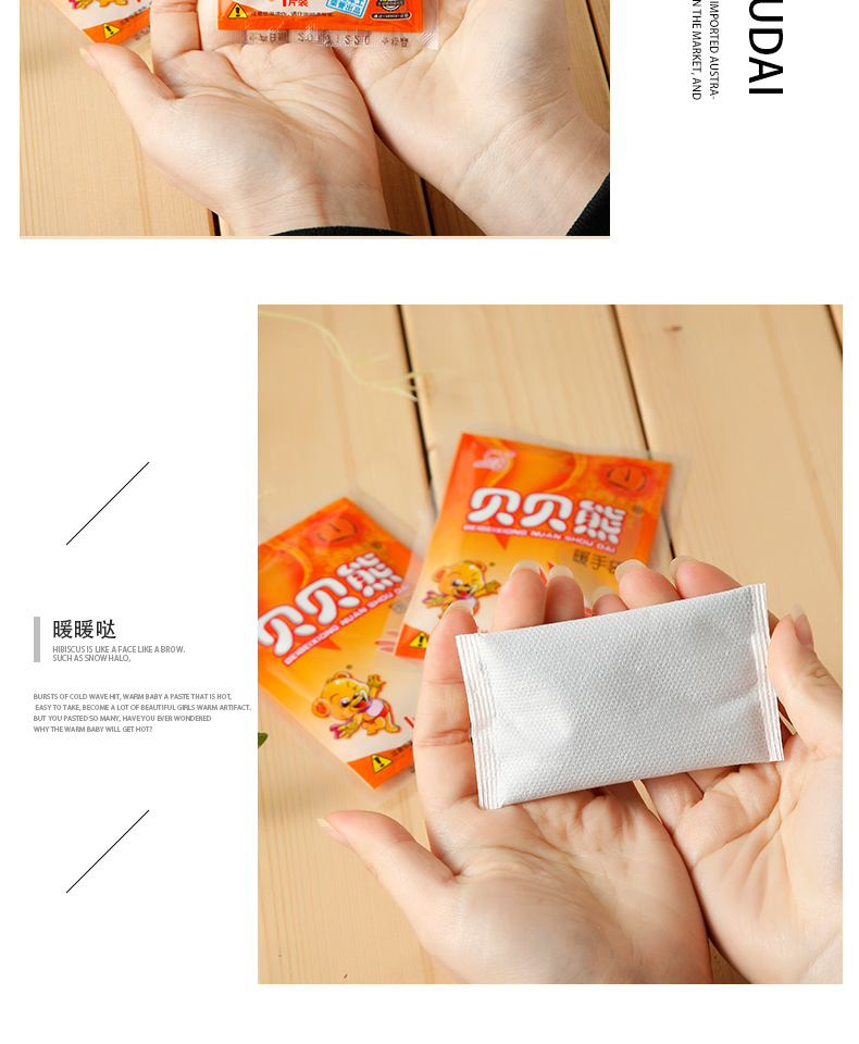 暖宝宝贴升级配方,透气保温,高标准铁粉,分布均匀,发热快,时间久,恒温持续发热10个小时,随时帖随时暖。让您告别寒冷冬!