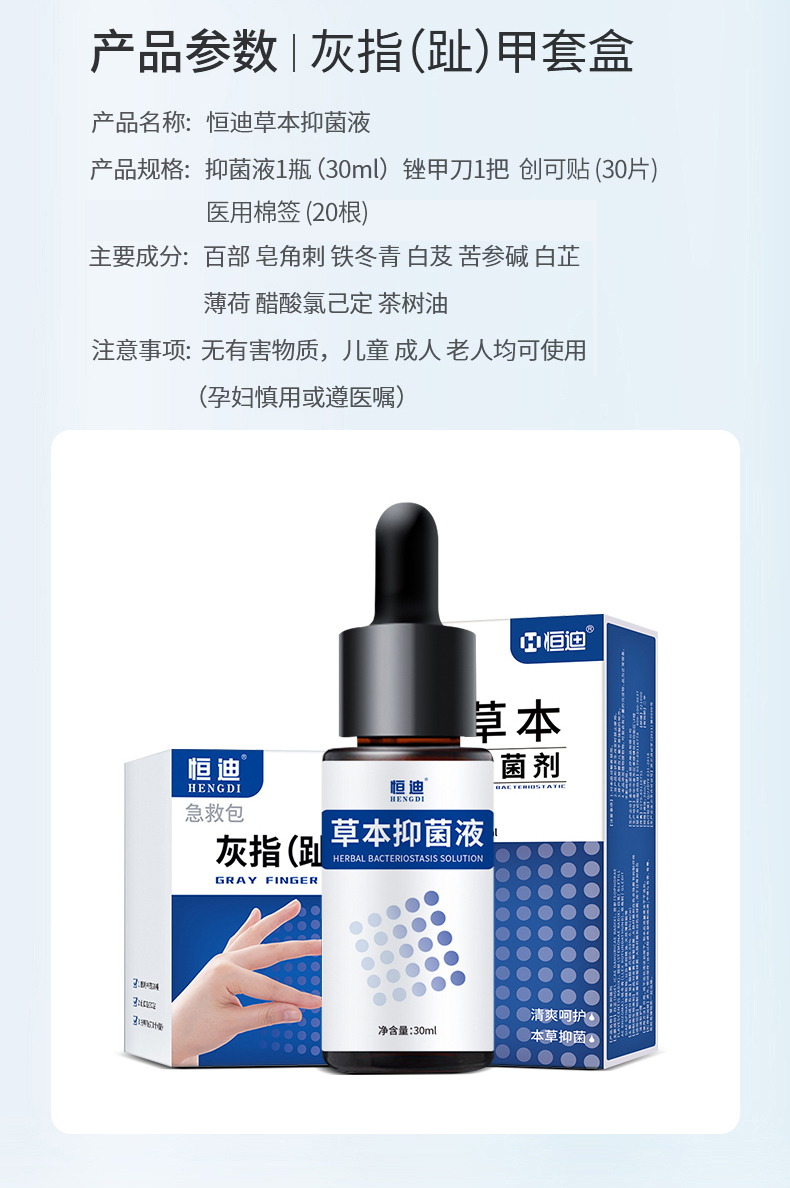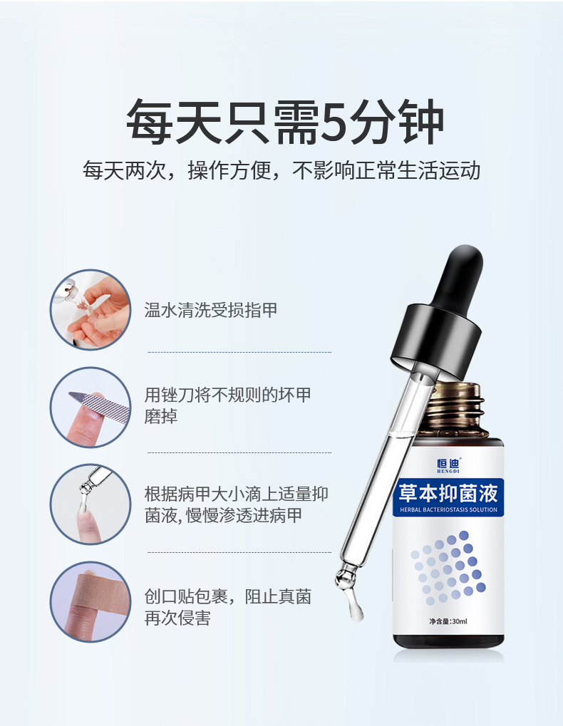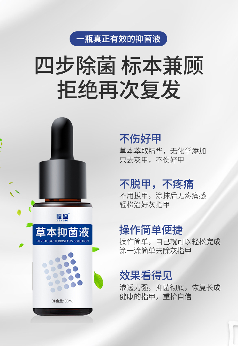 大牌恒迪去灰指甲草本抑菌液,抑制表面真菌,滋生养护指甲,中西医结合,草本抑菌,祛除灰甲,快速简便,高效彻底,安全无害,只需一滴,击溃灰甲,无疼痛,不脱甲,不影响生活,轻松告别灰指甲!