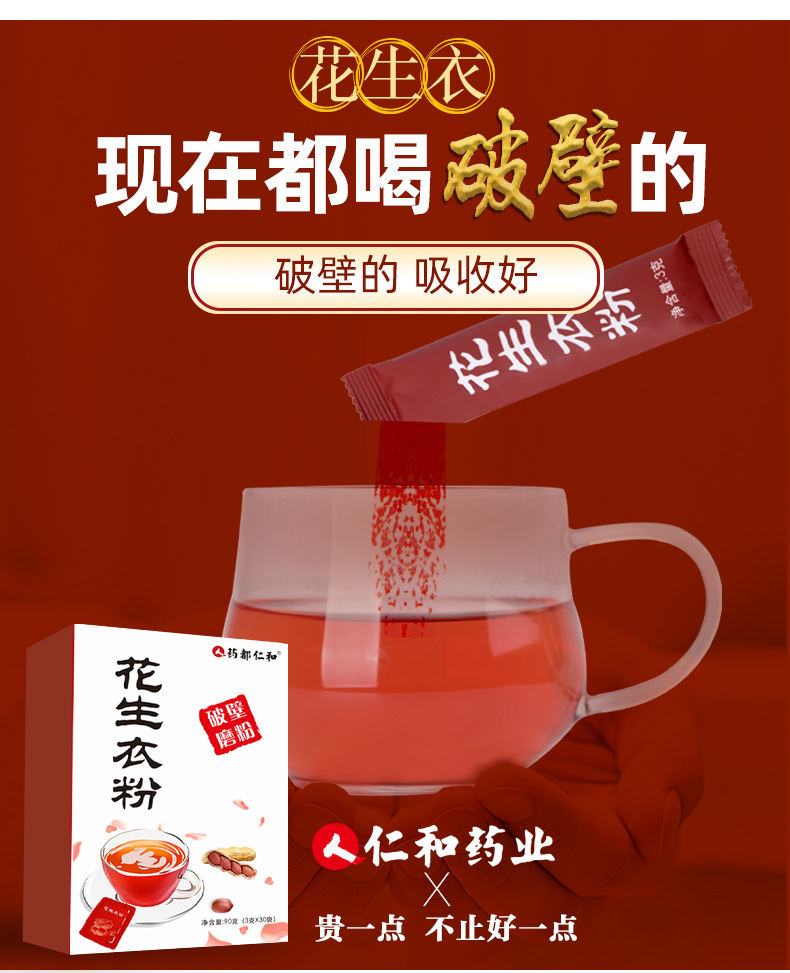 【仁和药业出品,6.9元/盒,30小包】破壁工艺,喝这个1包顶传统花生衣50g!多吃花生衣能减少牙龈出血,鼻出血!还能提升抗氧化,抵抗力!!【赠运费险】