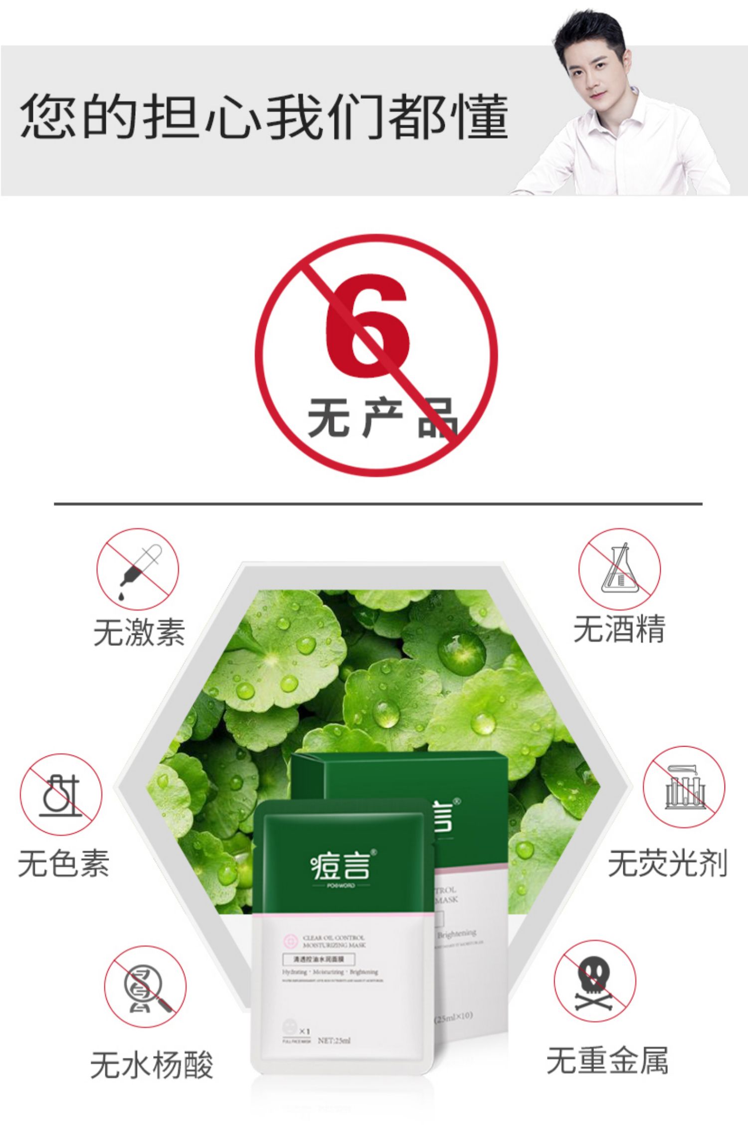 【药监局备案】痘言清透控油水润面膜,每片面膜高达25ml植萃精华,兰精天丝婴儿肌肤般细腻,牢牢锁住精华,蕴含多种养肤精萃成,草本植物配方,控油祛痘,修复痘肌!敷出水润透亮钻石肌!【赠运费险】