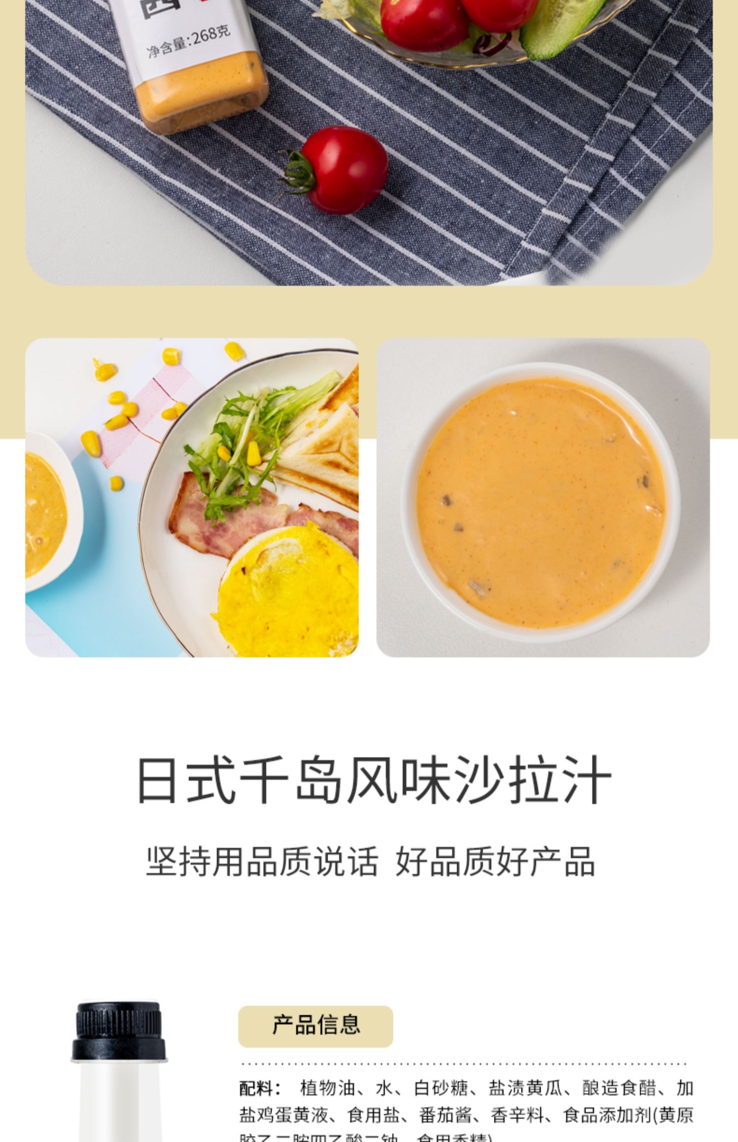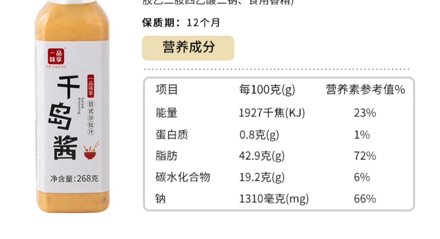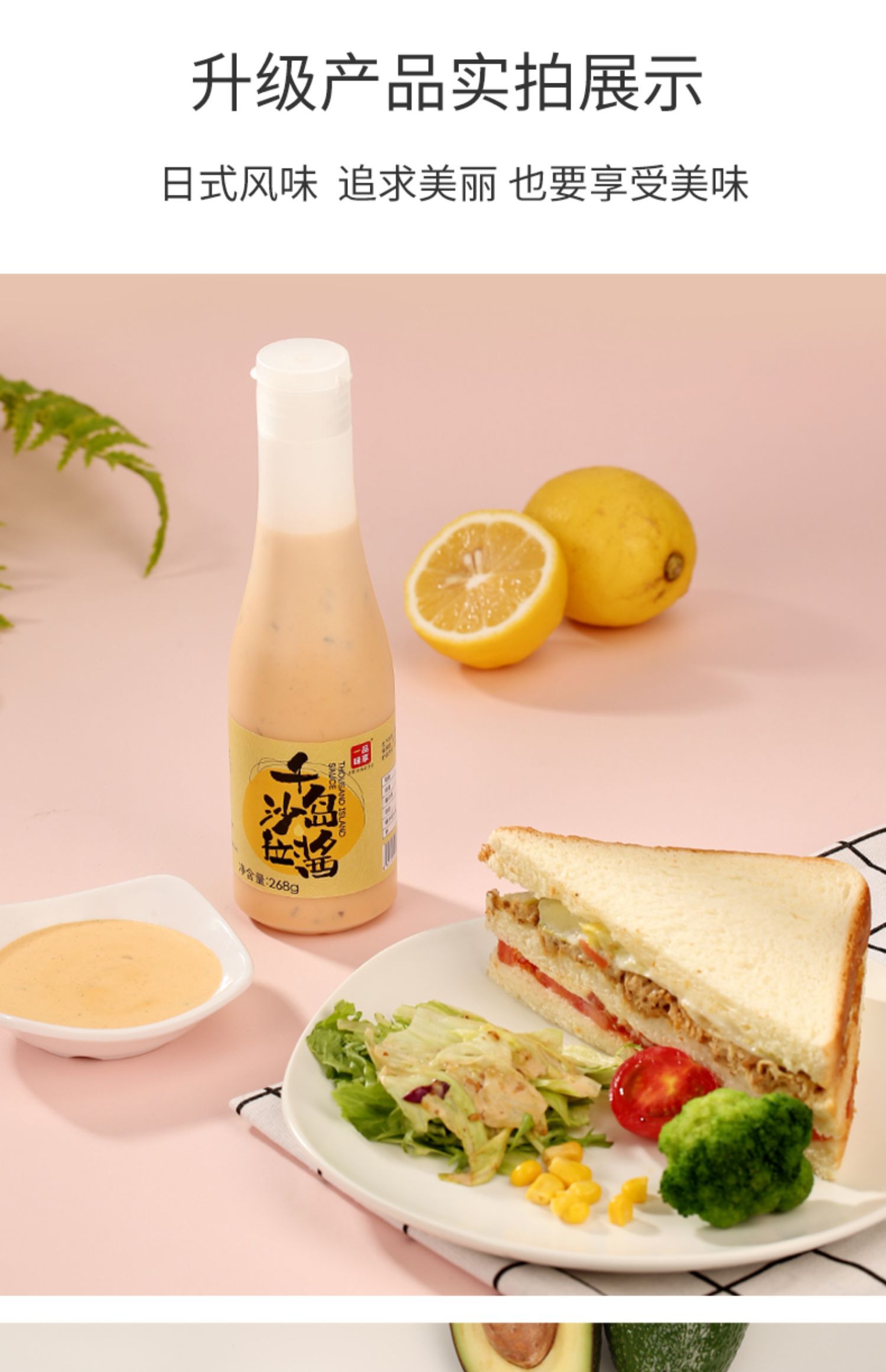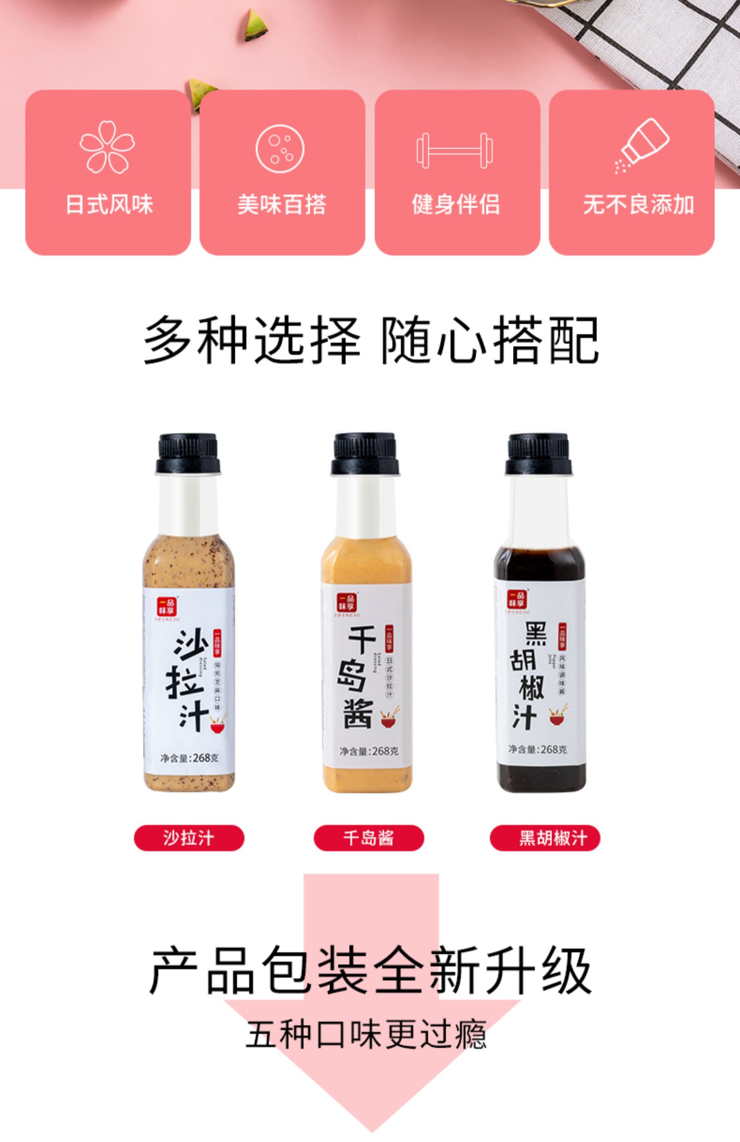 一品味享品牌,匠心品质,真正0脂肪低热量的沙拉汁,4.9高评分。可以做多种美食满足你的味蕾,寿司,章鱼烧,三明治,田园沙拉,水果沙拉等,3分钟吃上色香味美的食物