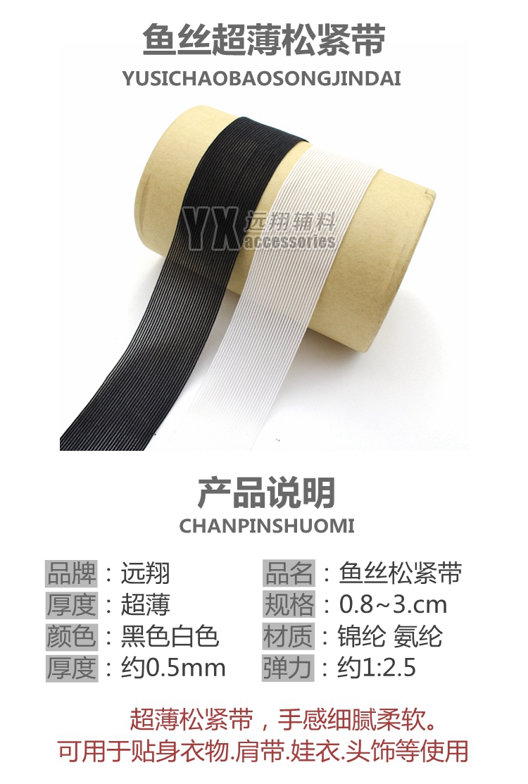 弹力橡皮筋,柔软亲肤,衣服扁松紧带,多色可选,弹力持久,结实耐用,性价比超高