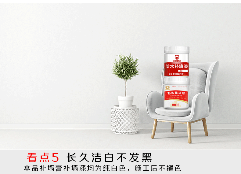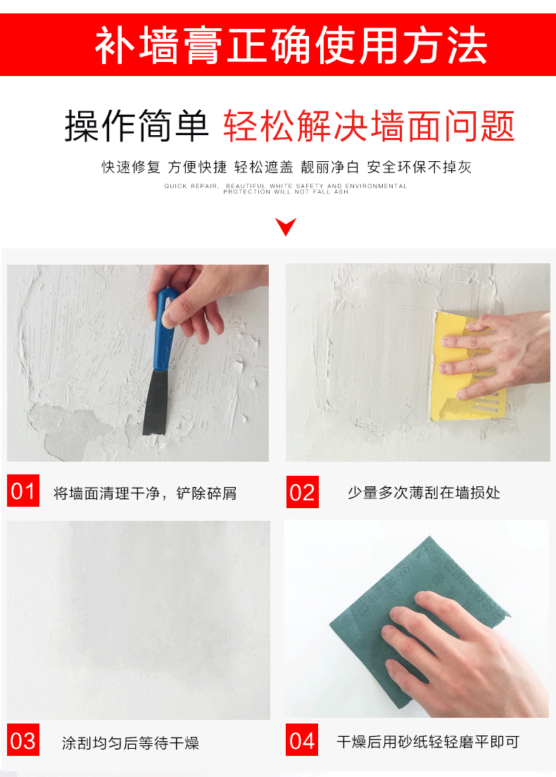 涂鸦裂缝脱落钉眼,防潮防霉,不掉粉,一涂一刮即可解决,操作简单,更加美观,修复后墙面耐脏易清洗哦!