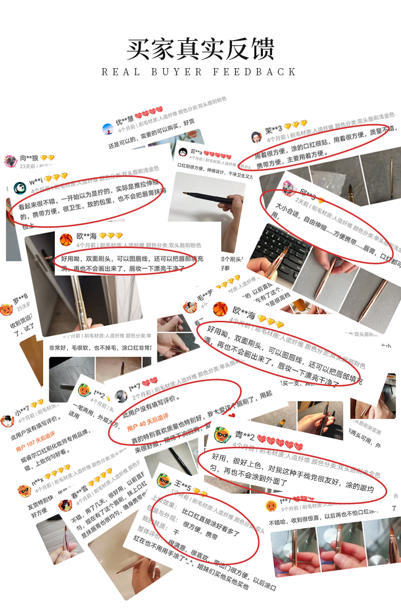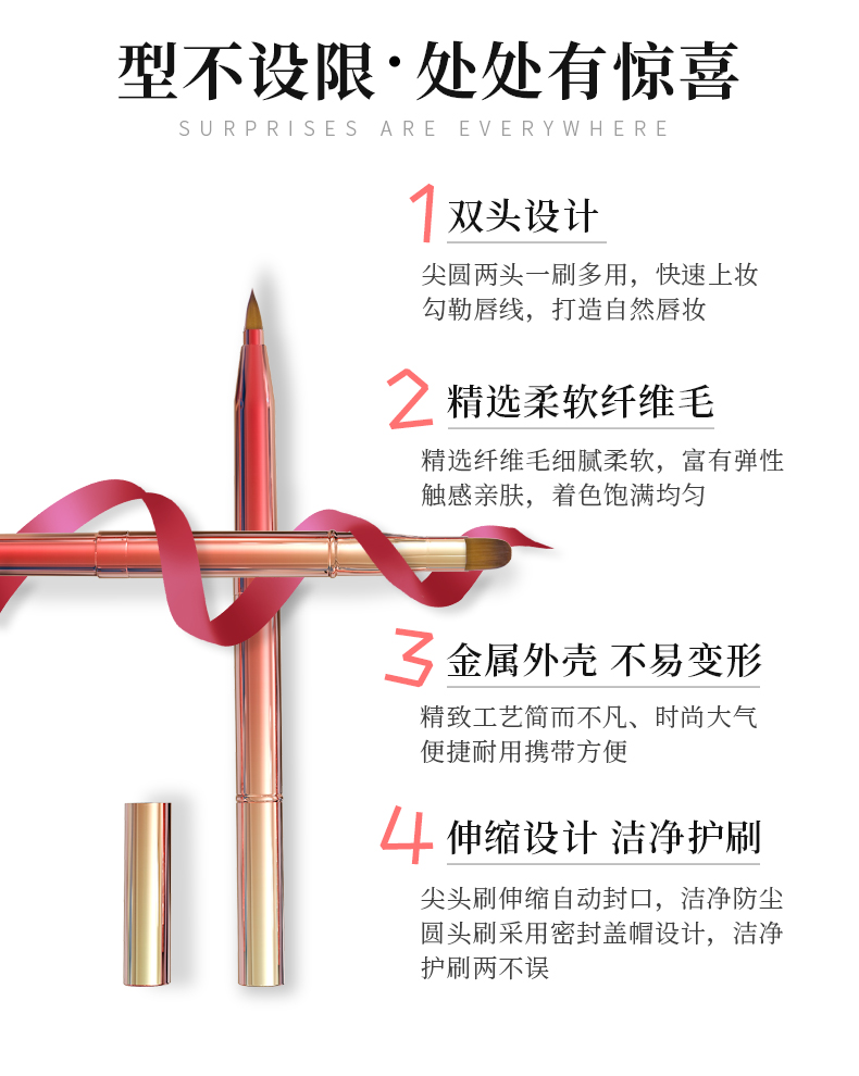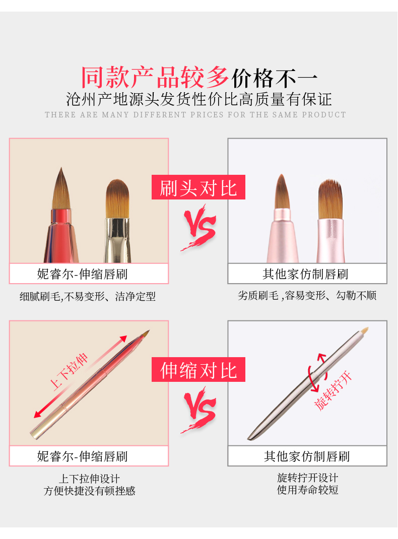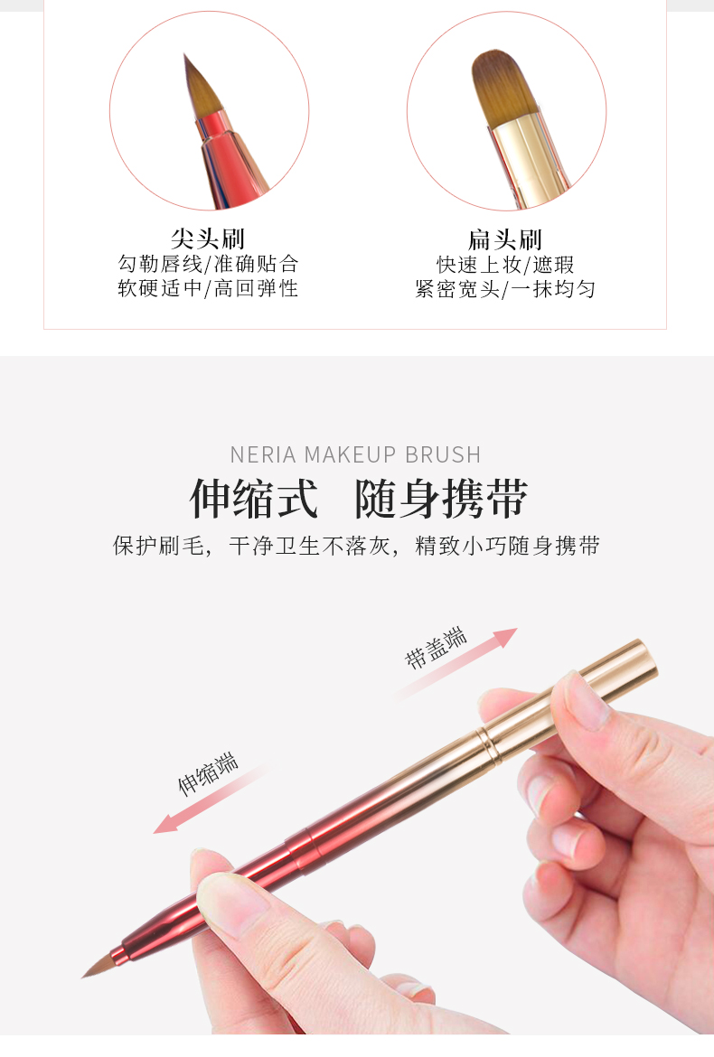 妮睿尔口红唇刷,不易变形,触感柔软,上色度强,一支2用,快速上妆,伸缩双头式方便携带,打造饱满性感双唇.