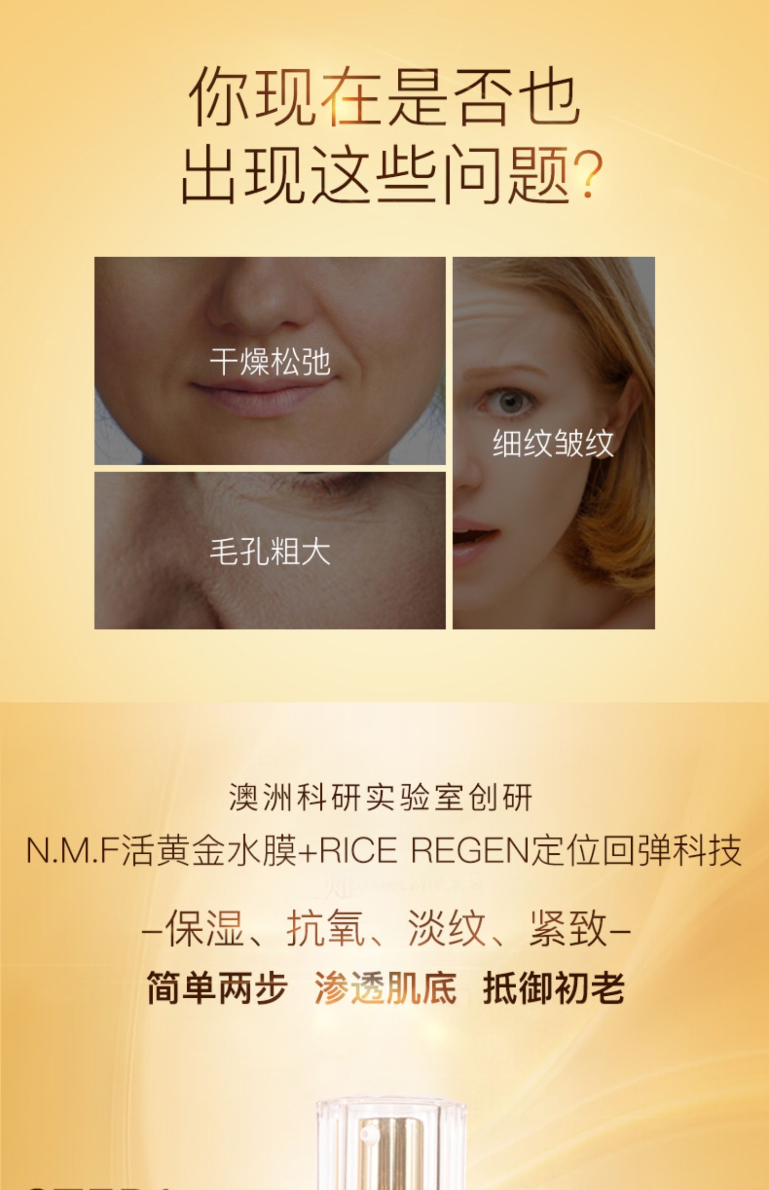 来自澳洲的黄金护肤水,澳洲各大知名药妆店热卖,科学纯净配方,三重胚米精华,加速胶原合成,重敷肌肤弹力,无激素无酒精,敏感肌可用!