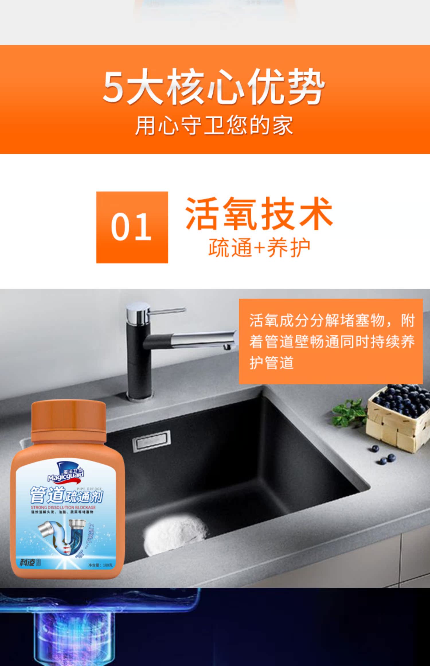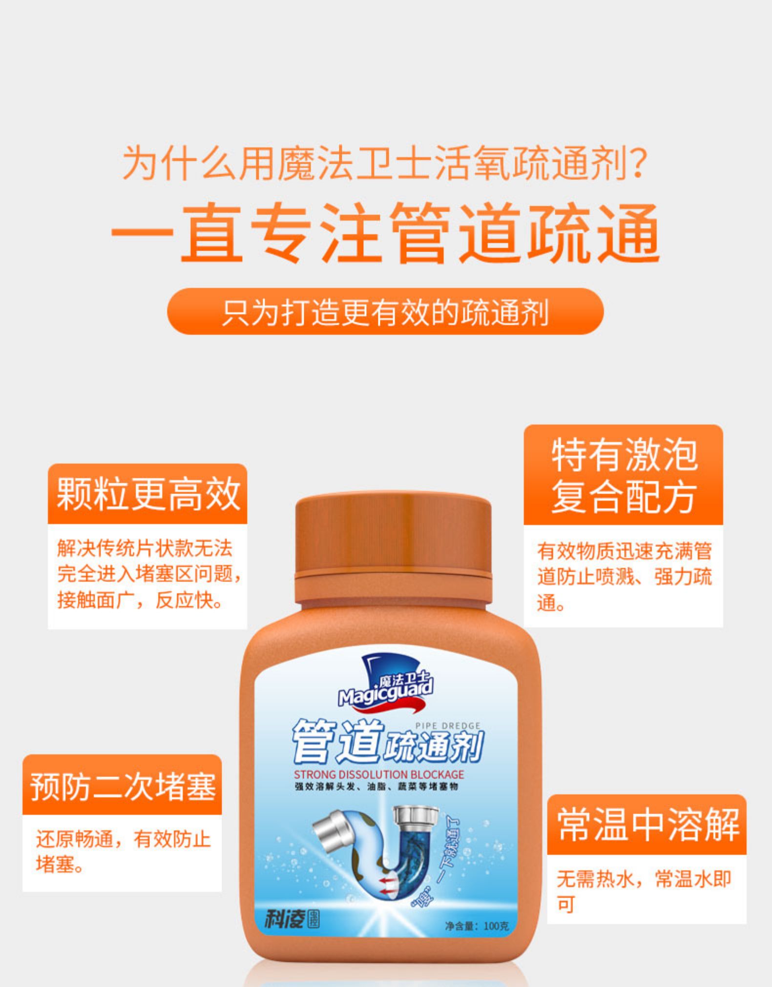 【买一瓶发三瓶】居家必备神器~魔法卫士管道疏通剂!深度清洁,预防堵塞,简单易操作~倒一倒,轻松疏通不伤下水管道!塑料管道也可以用哦,家家必备用了都说好~