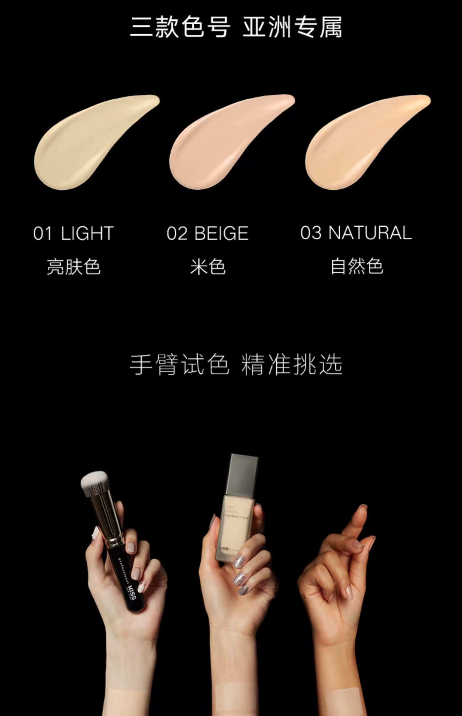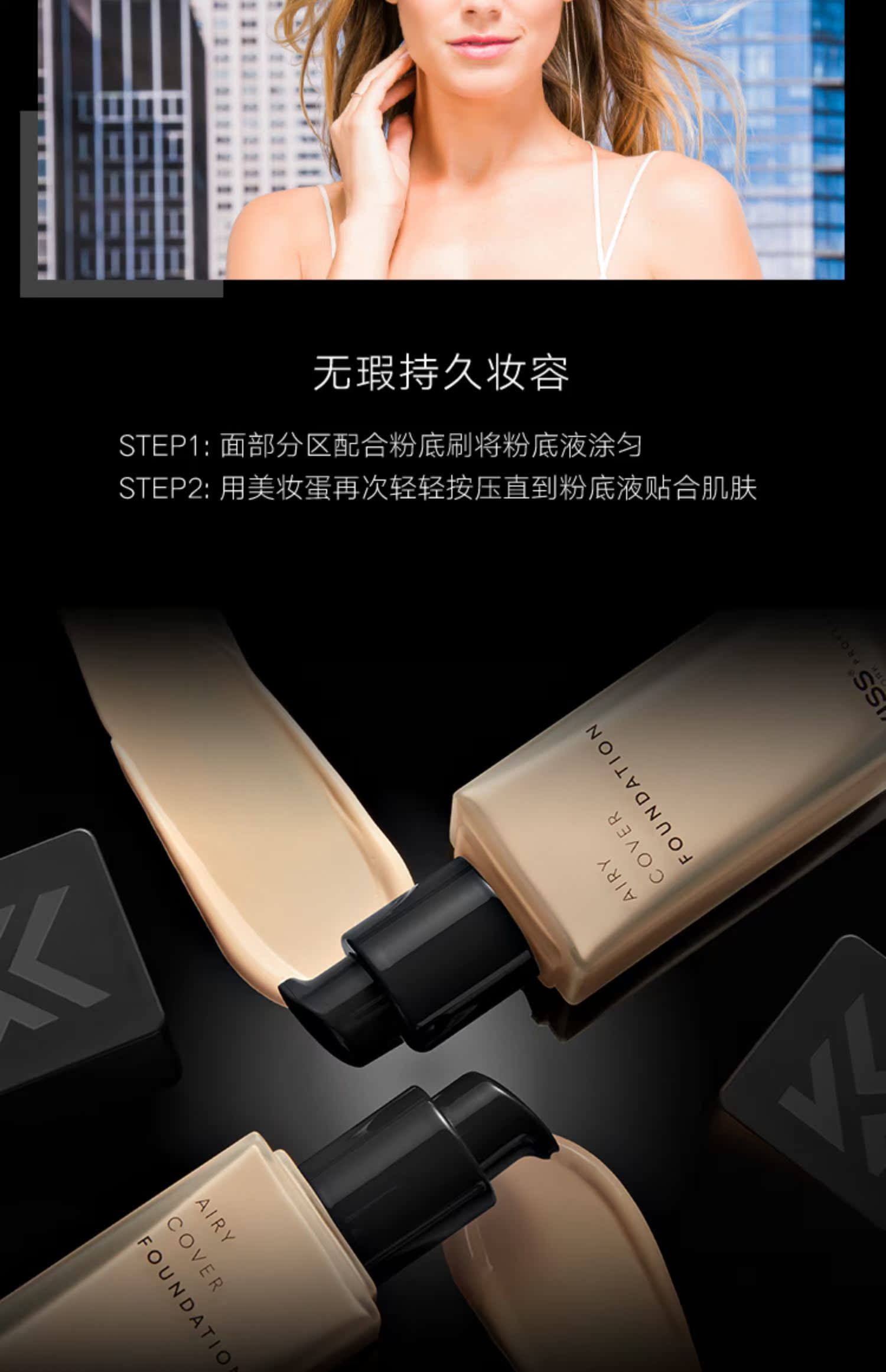 轻盈遮瑕粉底液!时尚简约的玻璃瓶设计,高端大气!符合多种肤质的不脱色粉底液,遮瑕加粉底二合一,强大保湿嫩白效果,水润透亮给你“素颜肌”,轻轻一抹,让你轻松变女神~~