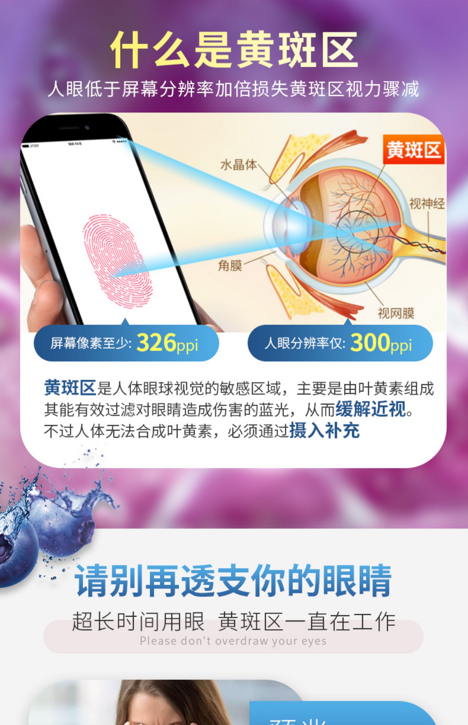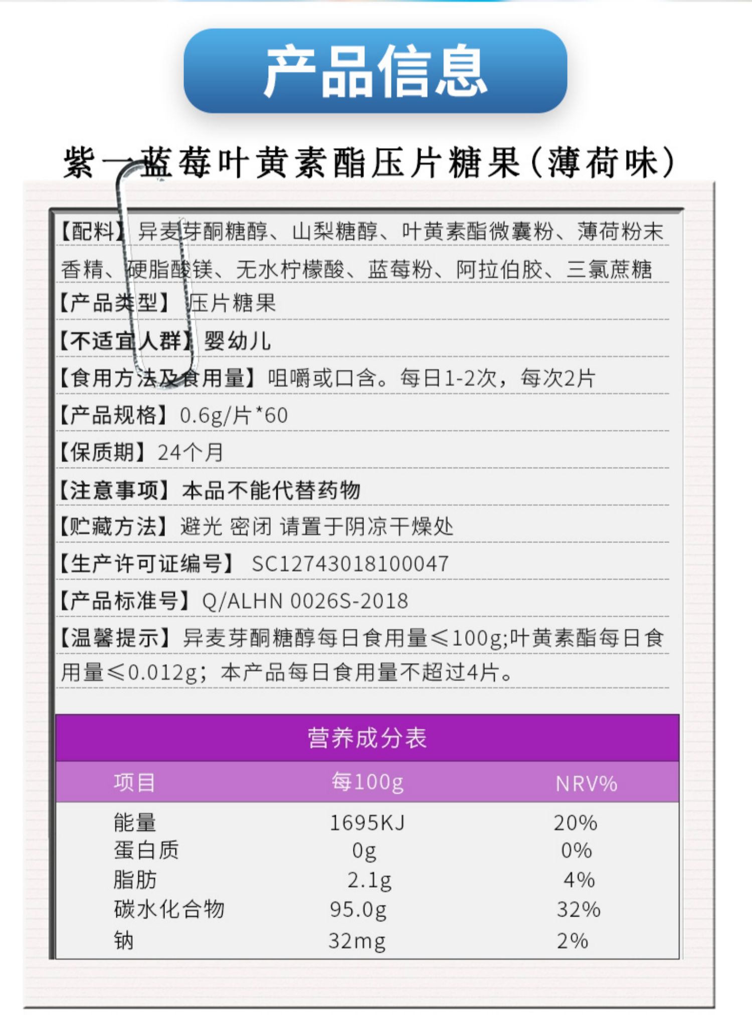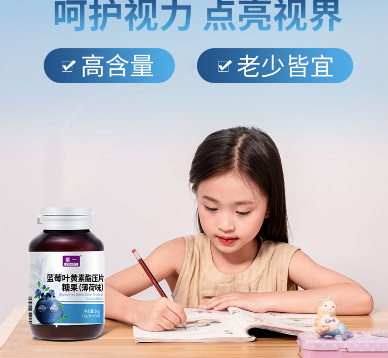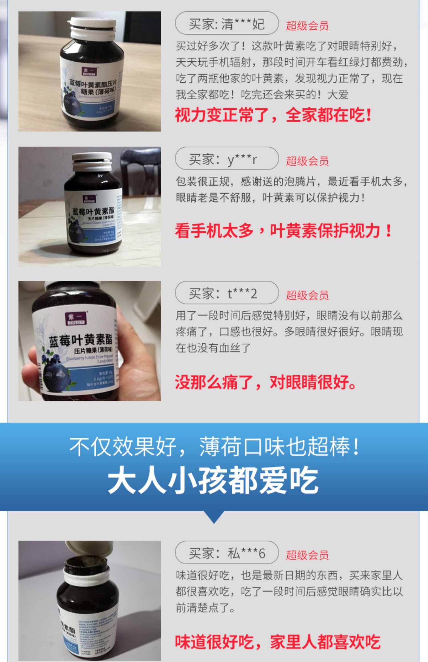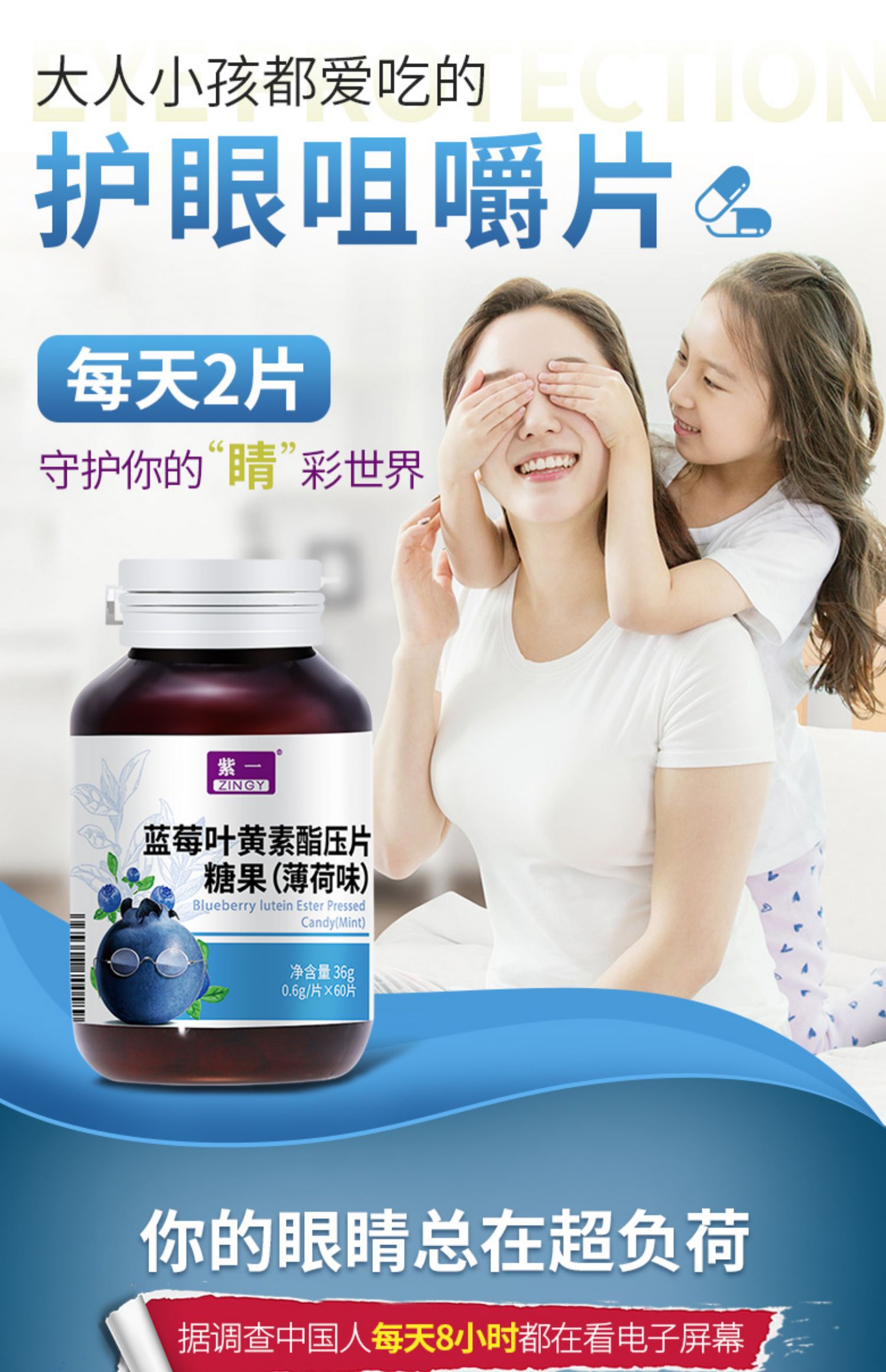 【紫一蓝莓叶黄素酯咀嚼片】含量高,每片叶黄素高达2.8mg,学习加班刷屏不伤眼,添加高浓度叶黄素,高达9,薄荷口味更清新,有效保护眼睛,缓解视疲劳。正品保证假一赔+。