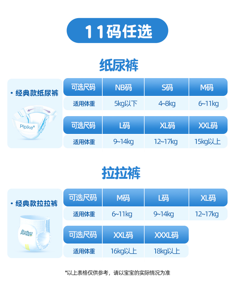 线下实体店全年销量累计2亿+片,pipike百万妈妈选择,不满意包退,拒绝红屁屁,起坨,断层,过敏,所有码任选,任意搭配,独立包装更放心