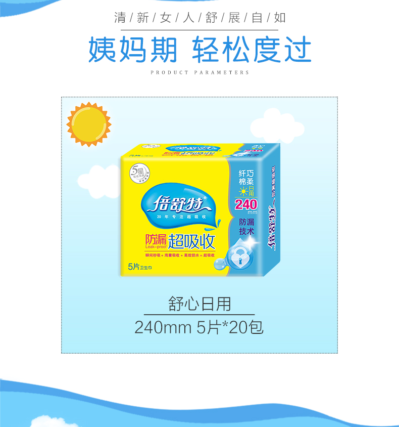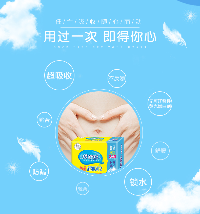 倍舒特卫生巾限时抢,绵柔亲肤,超薄透气,瞬吸干爽,不怕侧漏,不含荧光剂,无尘抑菌,轻松度过姨妈期,天天活力好心情。