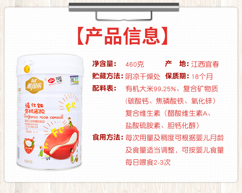 【拍1份发5盒】有机认证米粉,强化钙铁锌,多维营养和宝宝所需矿物质,营养成分是大米的3倍多,好吃不上火易吸收,好冲调不结块,妈妈得心应手