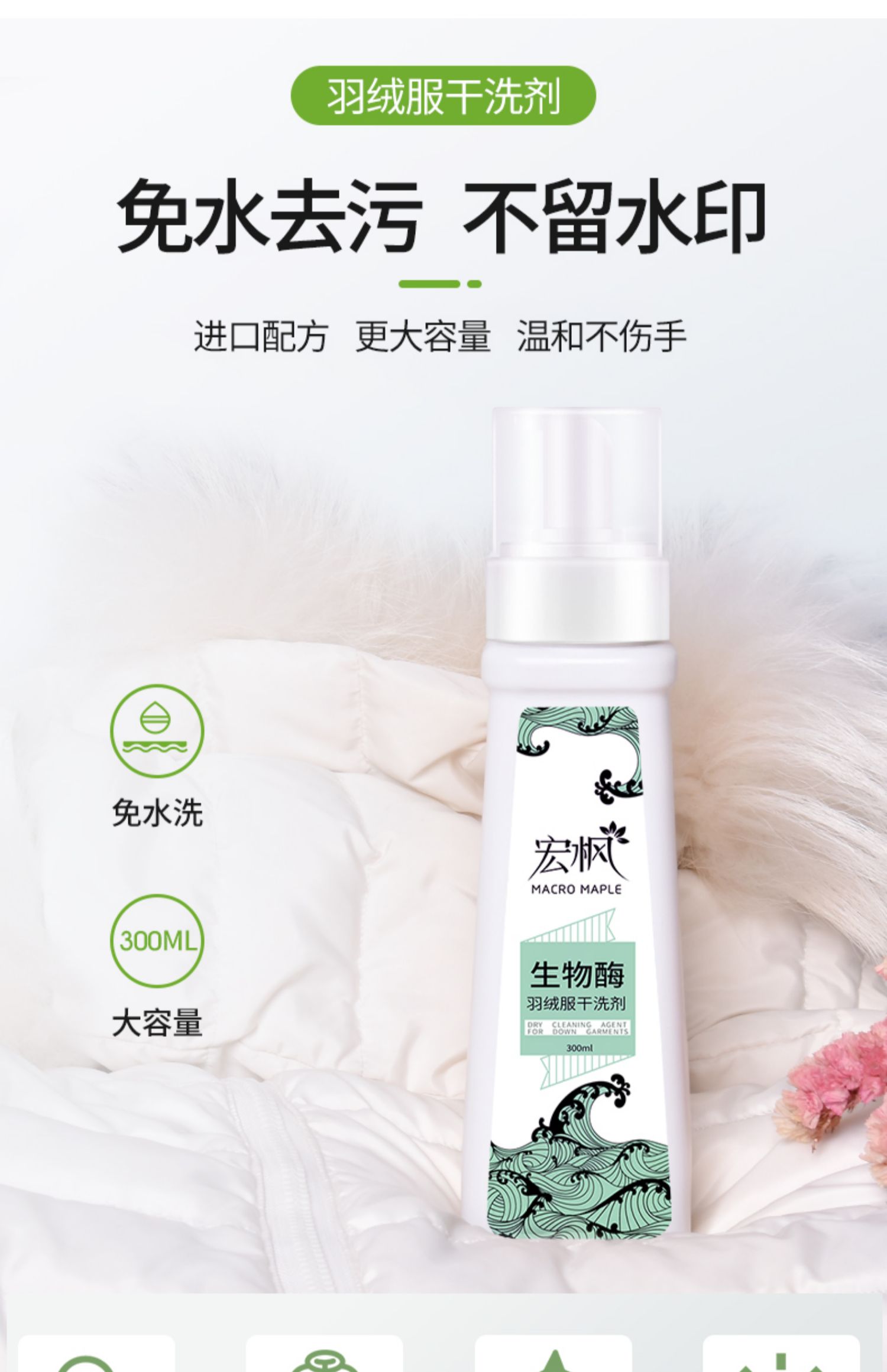 冬季衣物清洁好帮手!一喷一擦,衣服立刻干净如新!生物酶干洗配方,进口去污活性剂,植物萃取无磷配方,不伤衣物不伤手!免水去污,不留水印!七天无理由退换!