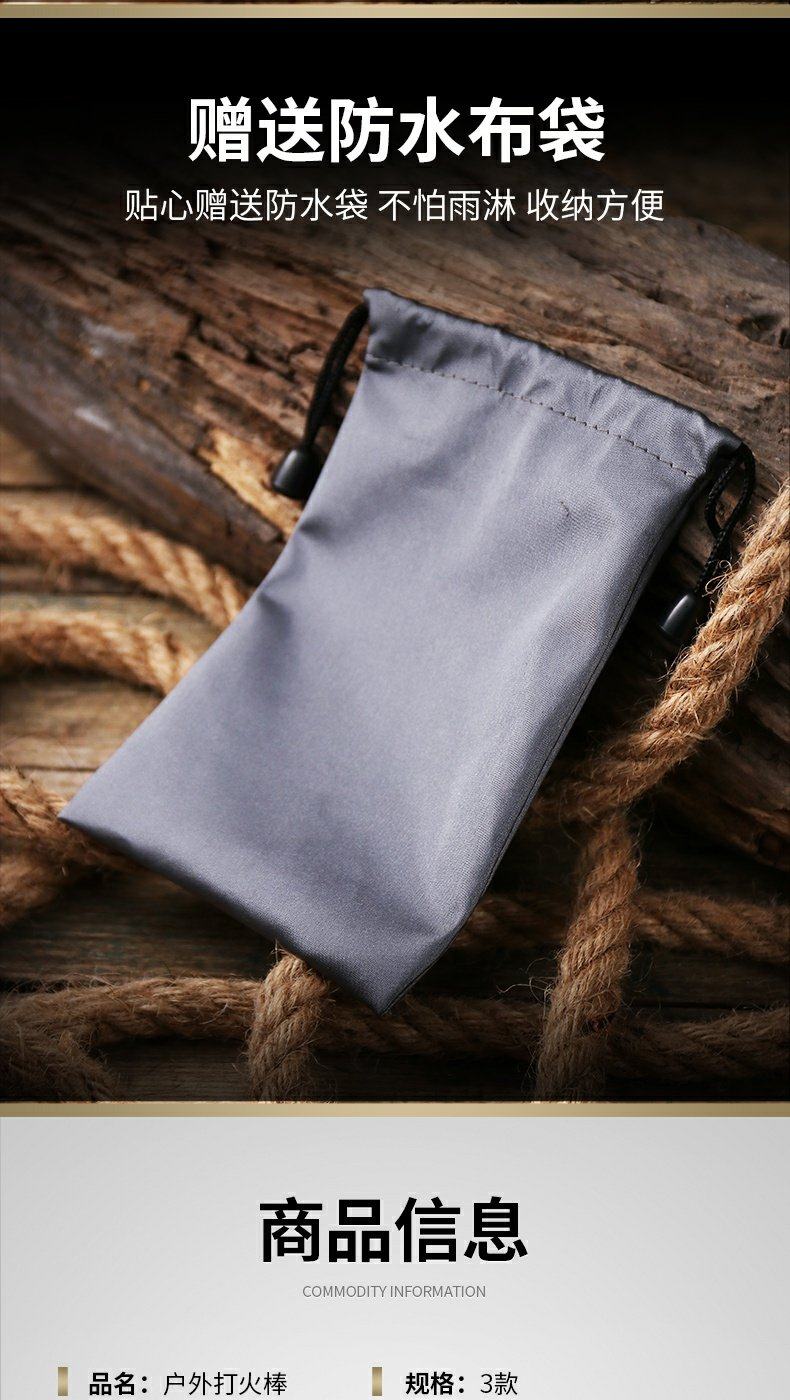 想要玩一次户外打火?体验原始生活,野外取火露营必备装备,终于搞活动啦,纯镁棒打火石,送刮片加绳子,纯度高,火花大,让你感受自己生火做饭的乐趣!