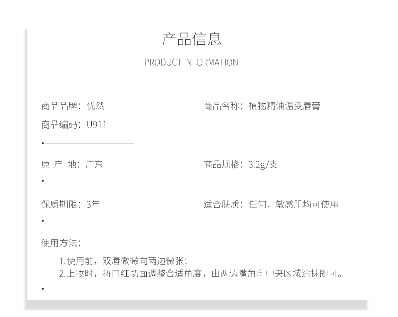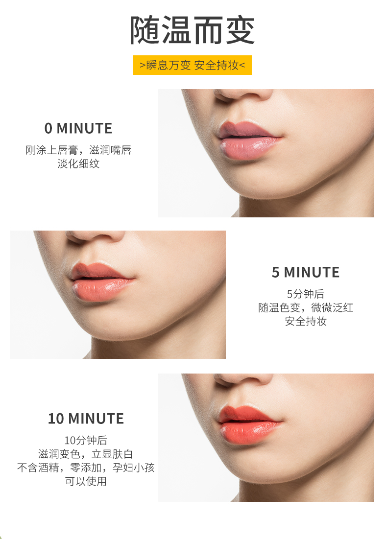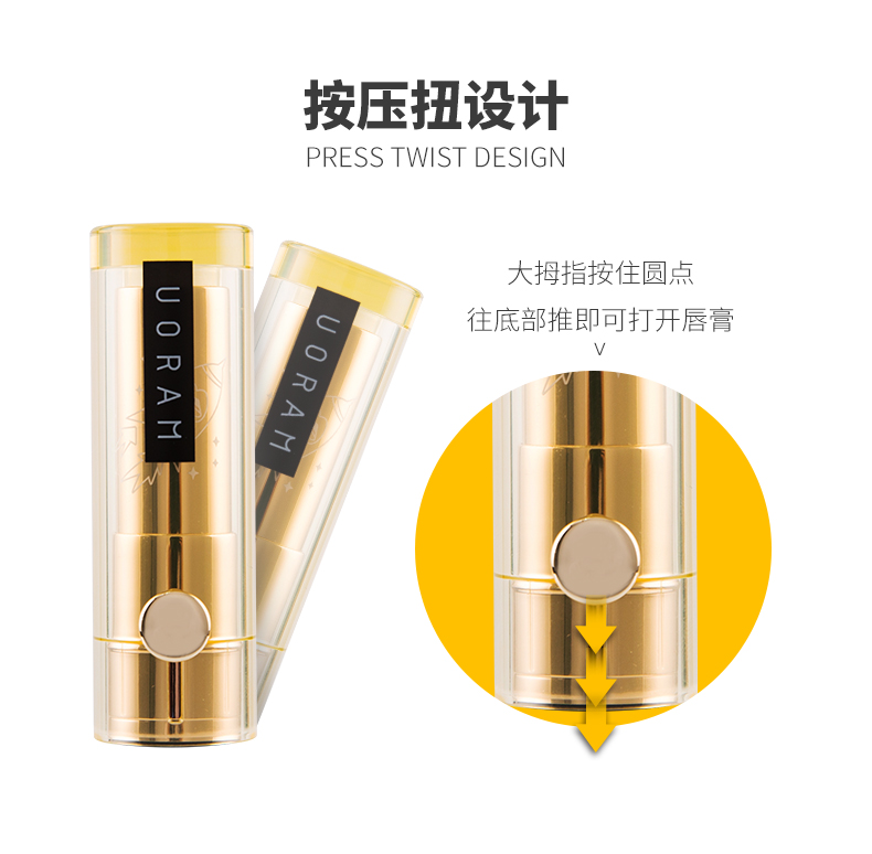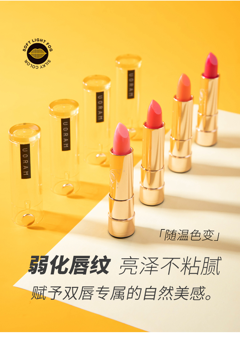uoram优然可爱变色润唇膏,弱化唇纹,亮泽不粘腻,随温色变,持久锁色,滋润自然。