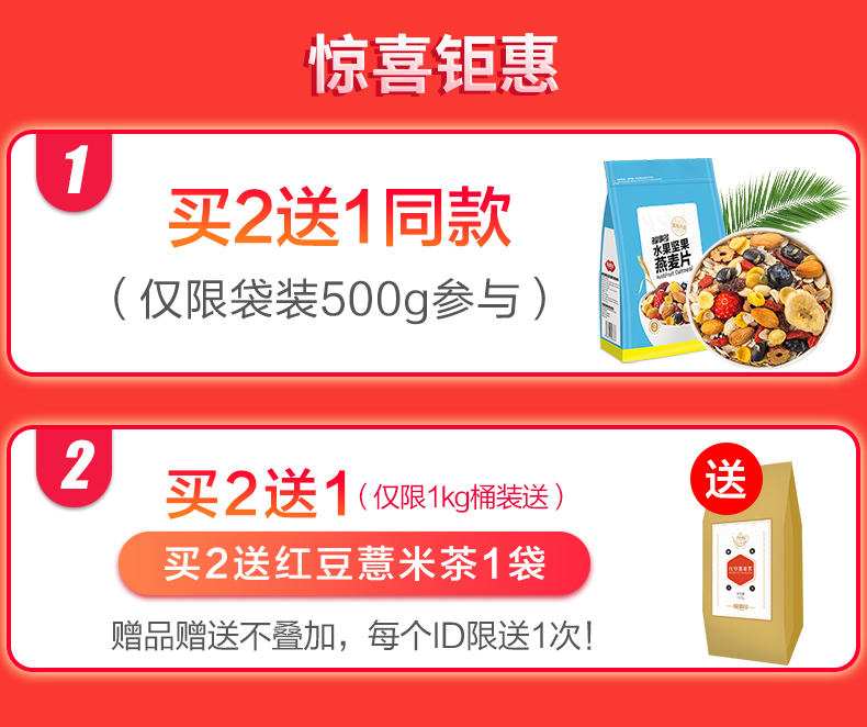 【买二送一,送同款500g】12种美味食材!澳洲燕麦,坚果超多,配料丰富,营养不单调,冲泡干吃都很棒,配蜂蜜,牛奶、酸奶冲泡味道更赞,当早餐、减脂餐满分!