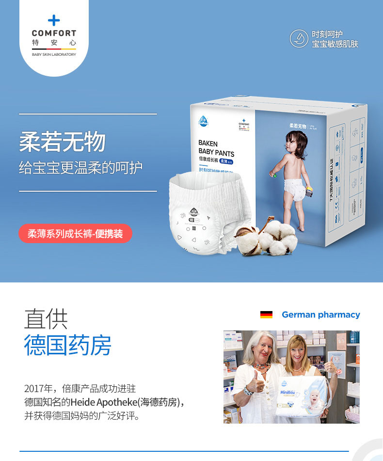 【倍康】柔薄拉拉裤XL8片,超高性价比,透气不粘腻,大环抱弹力腰围,弹力十足,不勒肚,更舒适