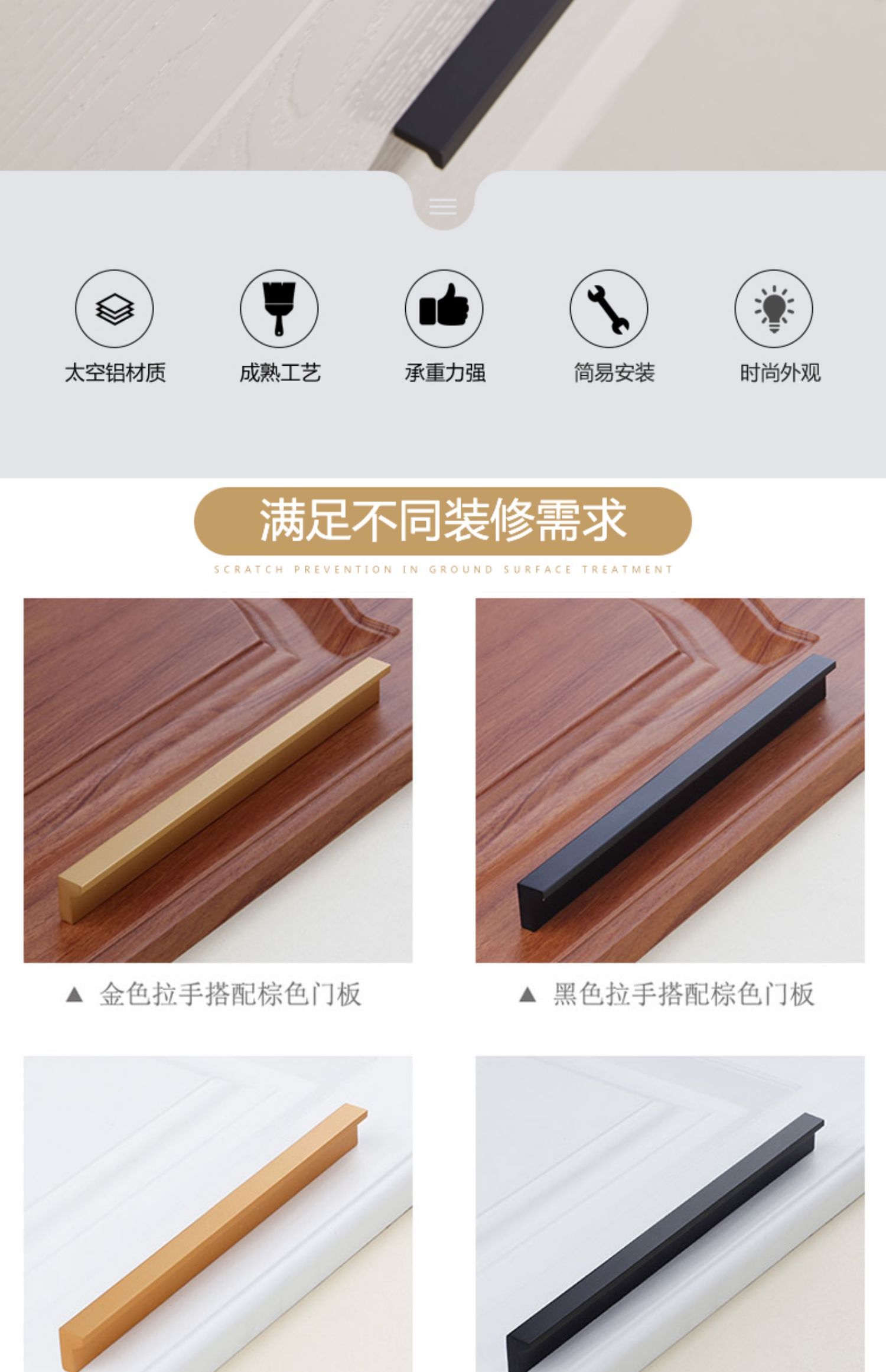 简约加长现代拉手,优选铝合金材质,满足不同装修风格,环保材质,多款选择,安全稳固,握感舒适,不掉漆、不退色,精湛工艺,时尚优雅,品质居家【赠运费险】