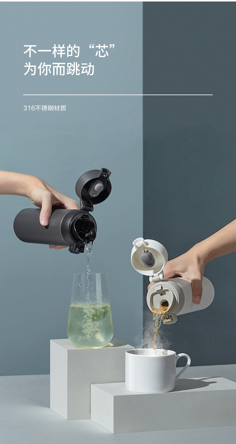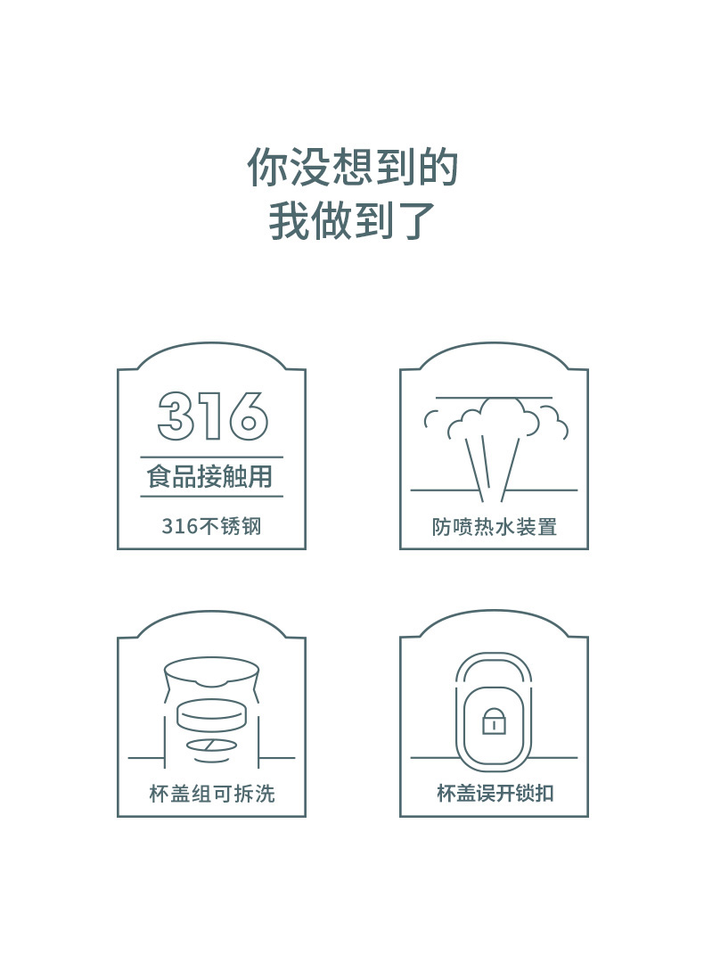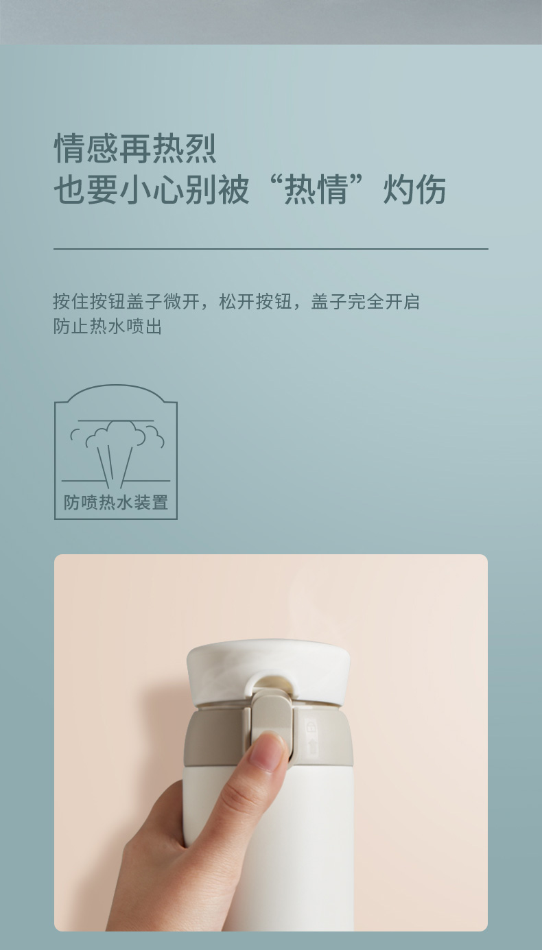 一键开启,防喷热水装置,居家旅行必备,双层高真空,316环保不锈钢,高密封防漏设计,使用更放心,盖子还能当杯子用,简约大气又实用