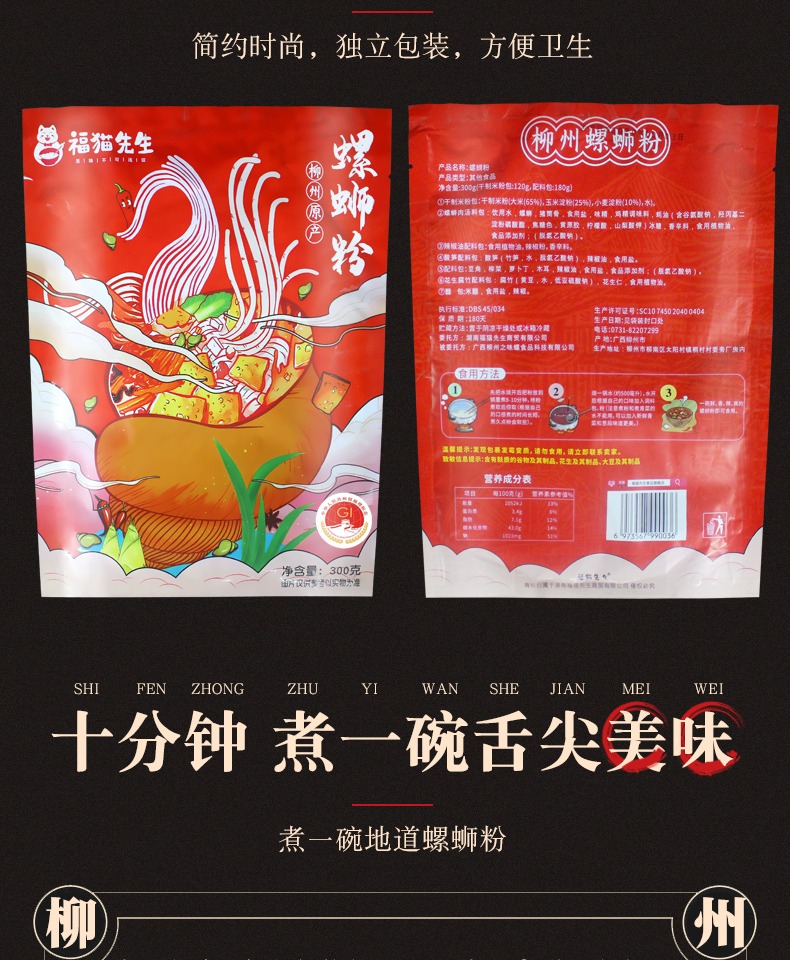 福猫先生品牌,广西特产,正宗柳州口味香辣螺蛳粉300g,配料齐全,具有酸、辣、鲜、爽的独特风味,汤底鲜美,无添加剂,口感双滑细腻,健康卫生,吃货必撸~