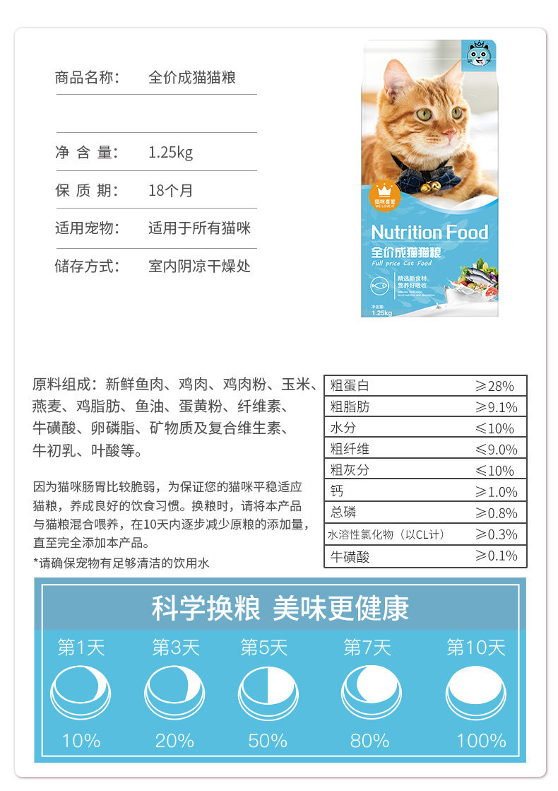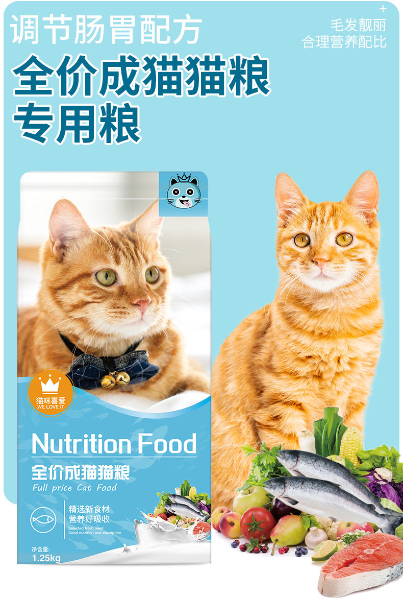 全猫通用,多种膳食均衡搭配,营养丰富适口性好,健齿强骨毛发亮泽,呵护肠胃健康~