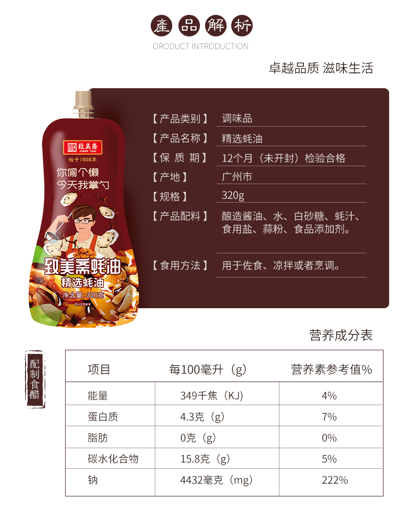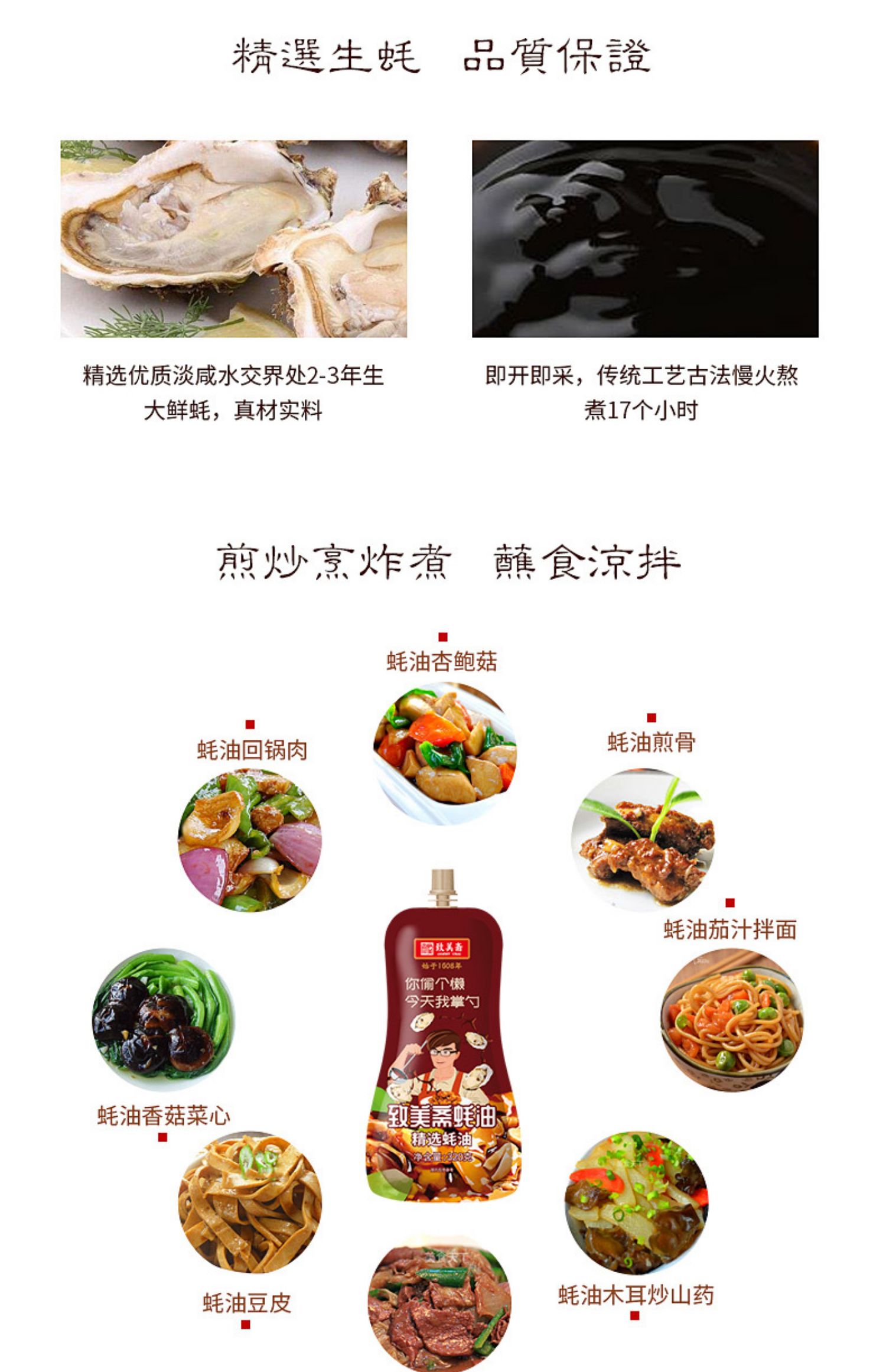 超市都有卖的品牌,精选御品真耗,蚝香浓郁,味道鲜美,浓稠细滑,色泽红润每一口都是真实的海鲜味道,超值装,速度抢