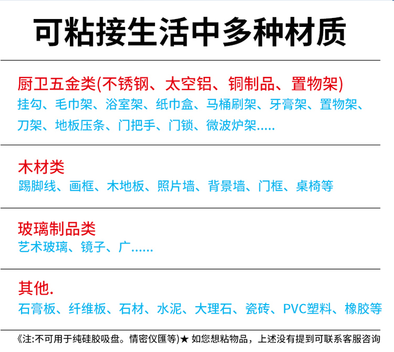 【牙膏般大容量】告别钉子,免打孔不损墙面,万用强力防水免钉胶,厨房卫生间置物架必备,超强承重,深度防水防潮,多功能用途,粘接墙面磁砖玻璃金属塑料等,粘住你就别想脱掉