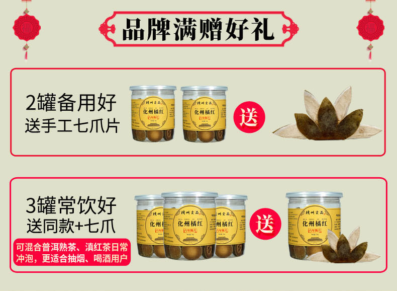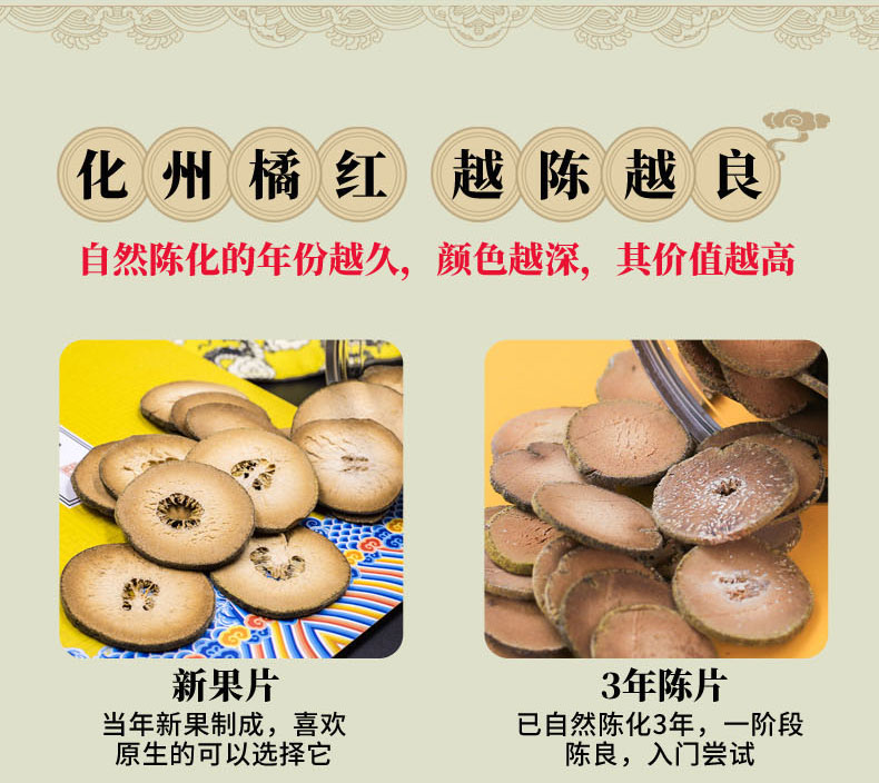 化州橘红,越陈越良,品牌承诺,让您买的放心!原生态轻加工、原果手工制作—自然陈化;橘香浓郁、汤色清澈,对于长吸烟喝酒客户,常饮化橘红更好!