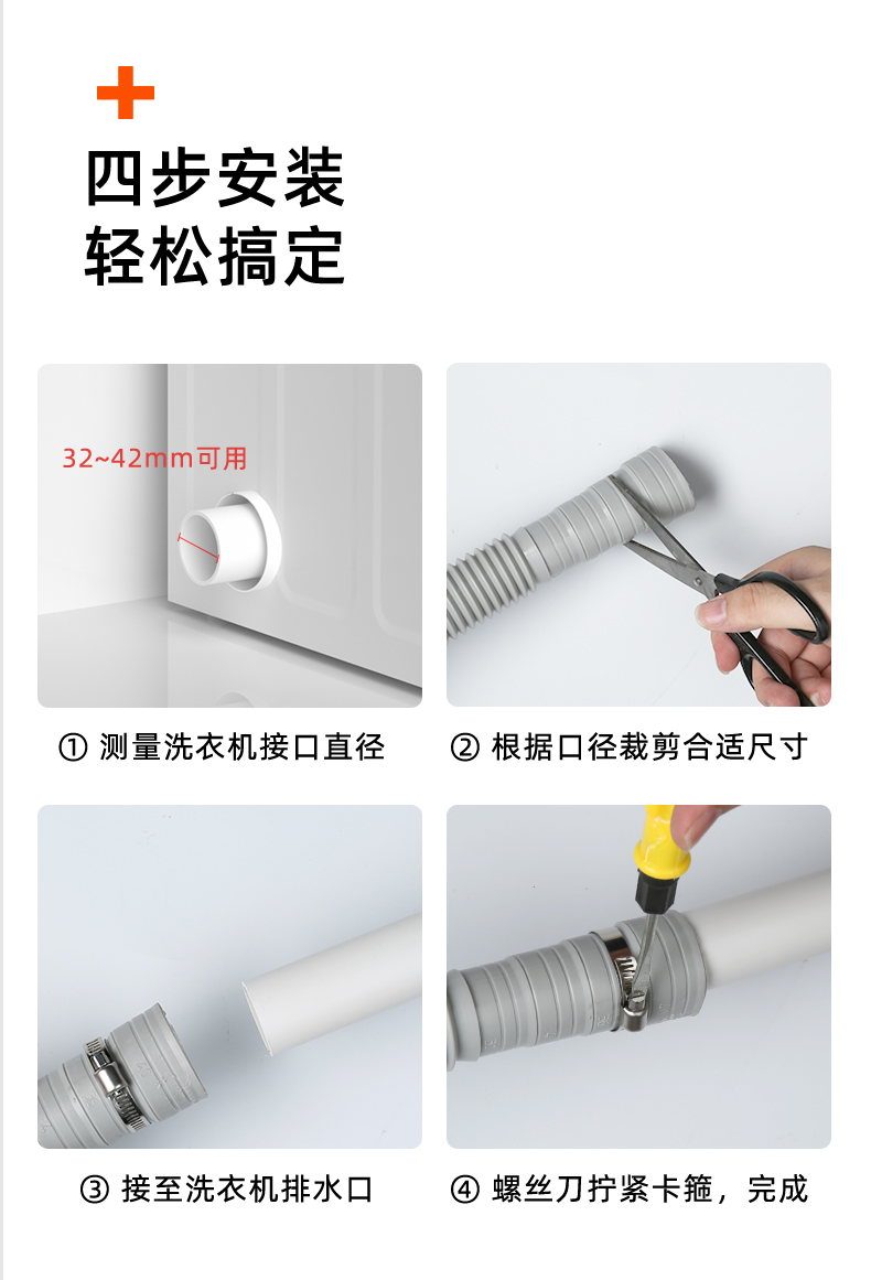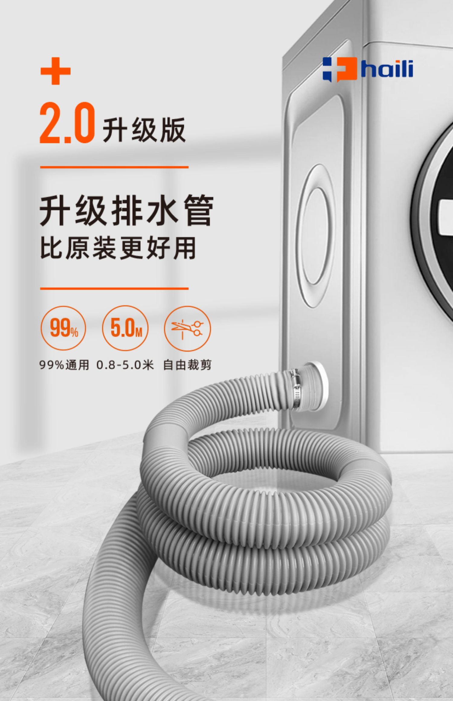 家里洗衣机排水管用久了?该换换啦!通用设置,防裂防爆,加粗耐用,安装方便,可随意弯曲,拉不断、压不裂,防腐防晒超耐用!快抢!