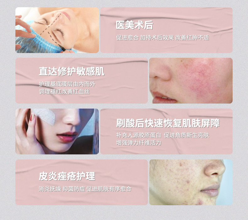 医用级面膜,人源胶原蛋白3.0,二类器械,医美术后修复,无菌生产,无添加。敏感肌克星,无激素,无依赖性,不刺激,不过敏!