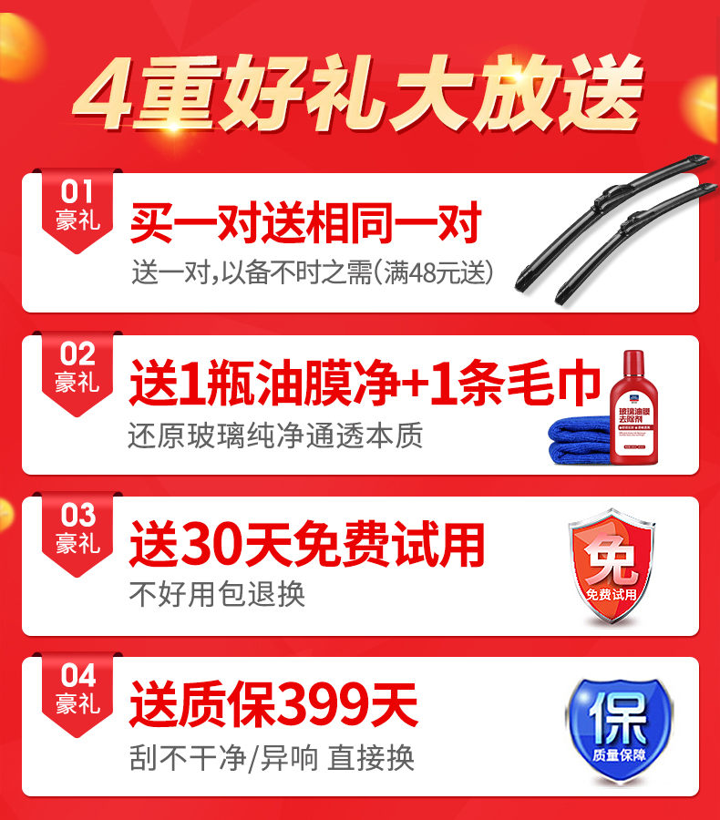 【一对装】天猫爆款产品,下单备注年份车型!5A级天然胶条,外观时尚,经久耐用,刮拭干净,运行稳定安静,是爱车一族的选择!【赠运费险】