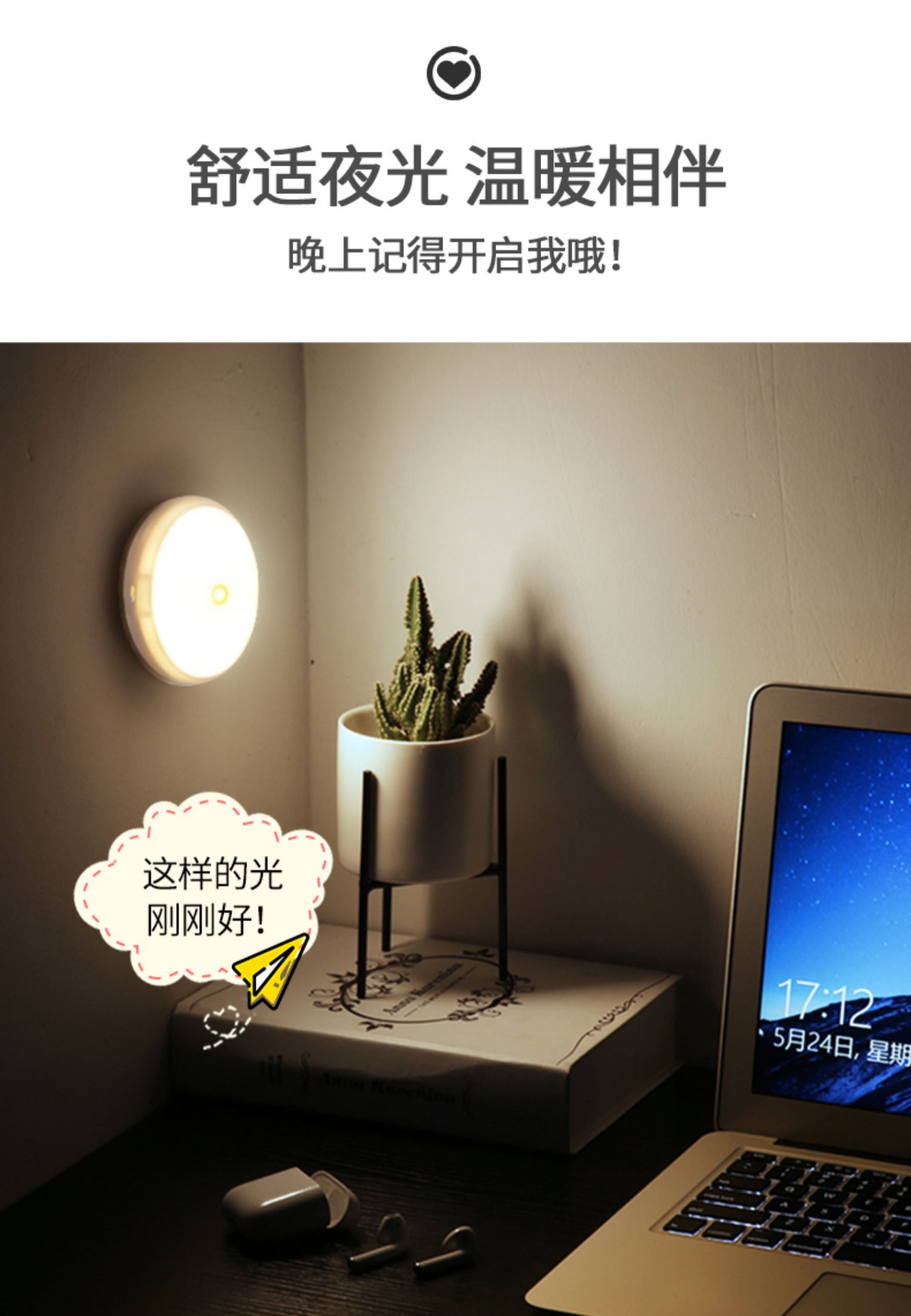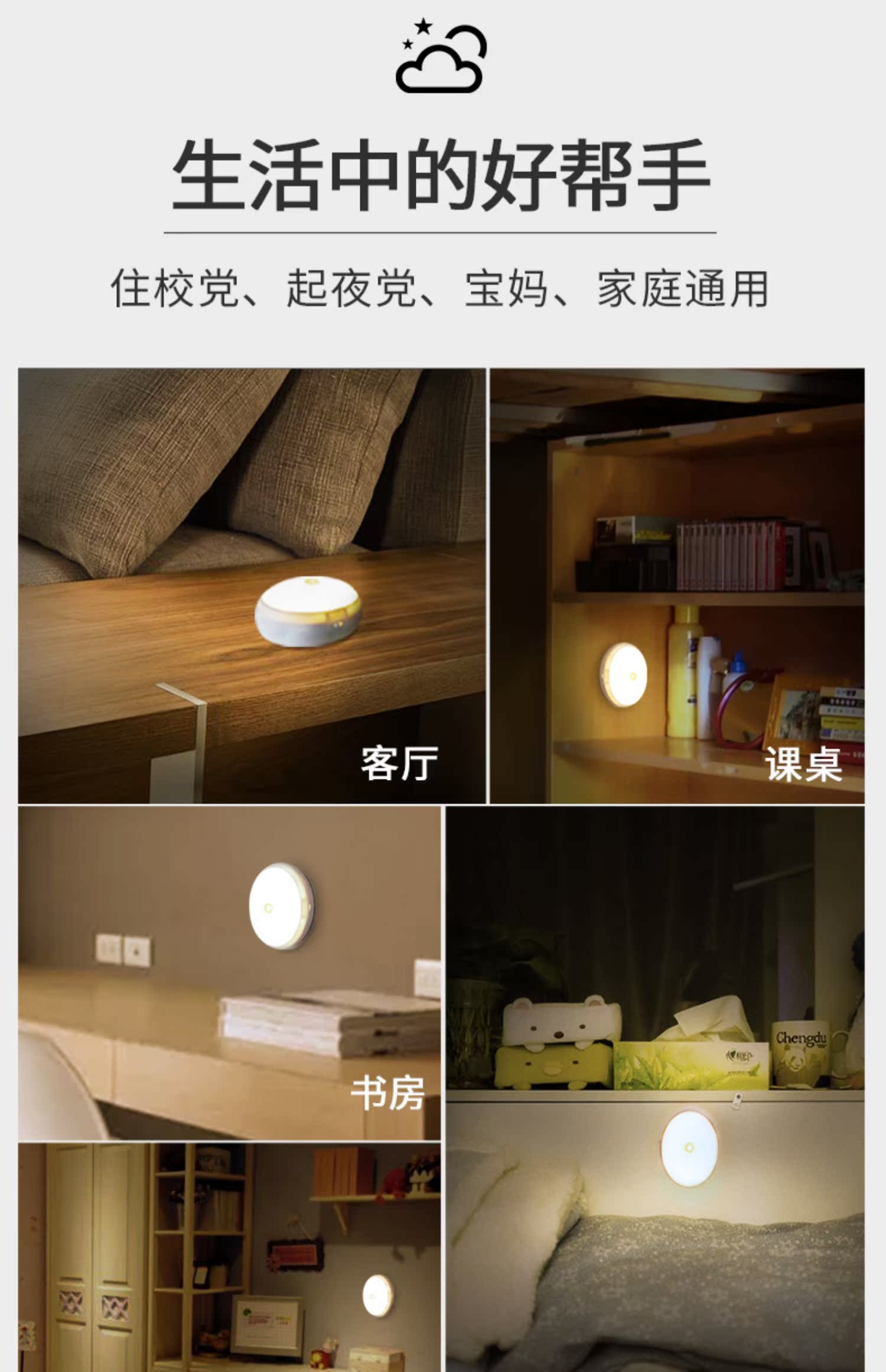 【卧室宿舍神器】豪泰明小夜灯充电式自动感应灯家用,过道楼梯衣柜光控声控喂奶led智能,光线柔和不刺眼,环保节能又省电,专为方便设计,再也不用担心摸黑起夜,温馨守护每一个夜晚~【七天无理由退换货】