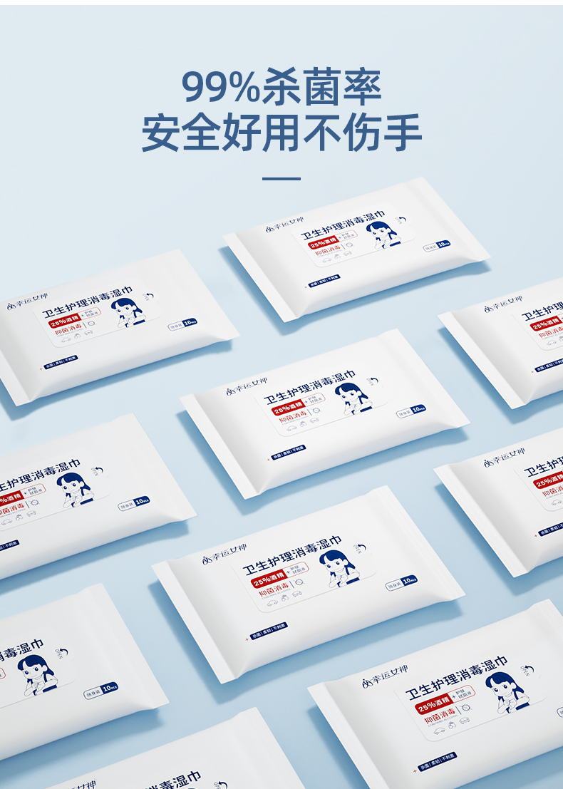 酒精消毒湿巾,便携装,有效消灭活病毒。柔软水刺无纺布,宝宝放心用。孩子上学,居家外出,防疫长备。