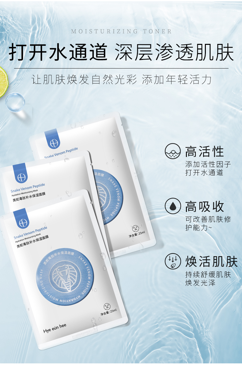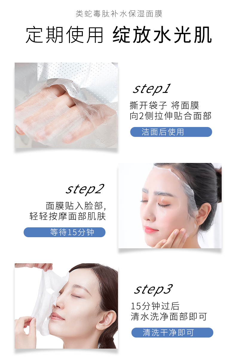 类蛇毒肽补水保湿面膜2片,天然保湿因子,快速补水,让皮肤光滑细腻,防止水分散发,促进新陈代谢~