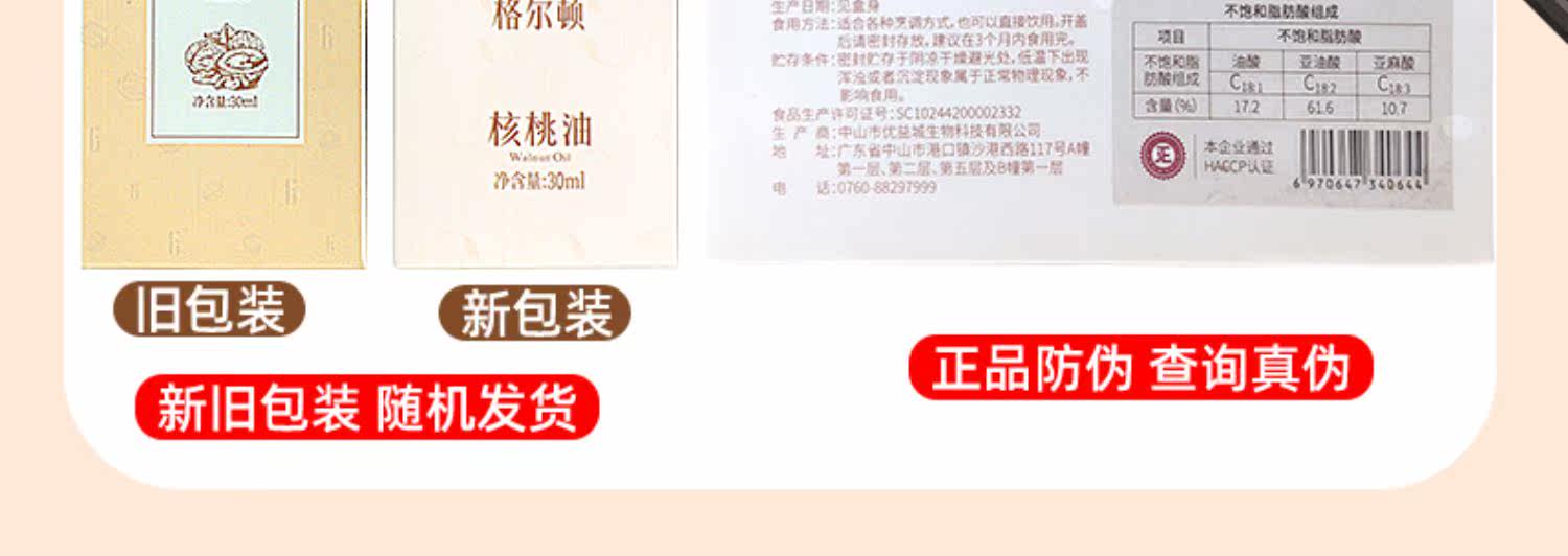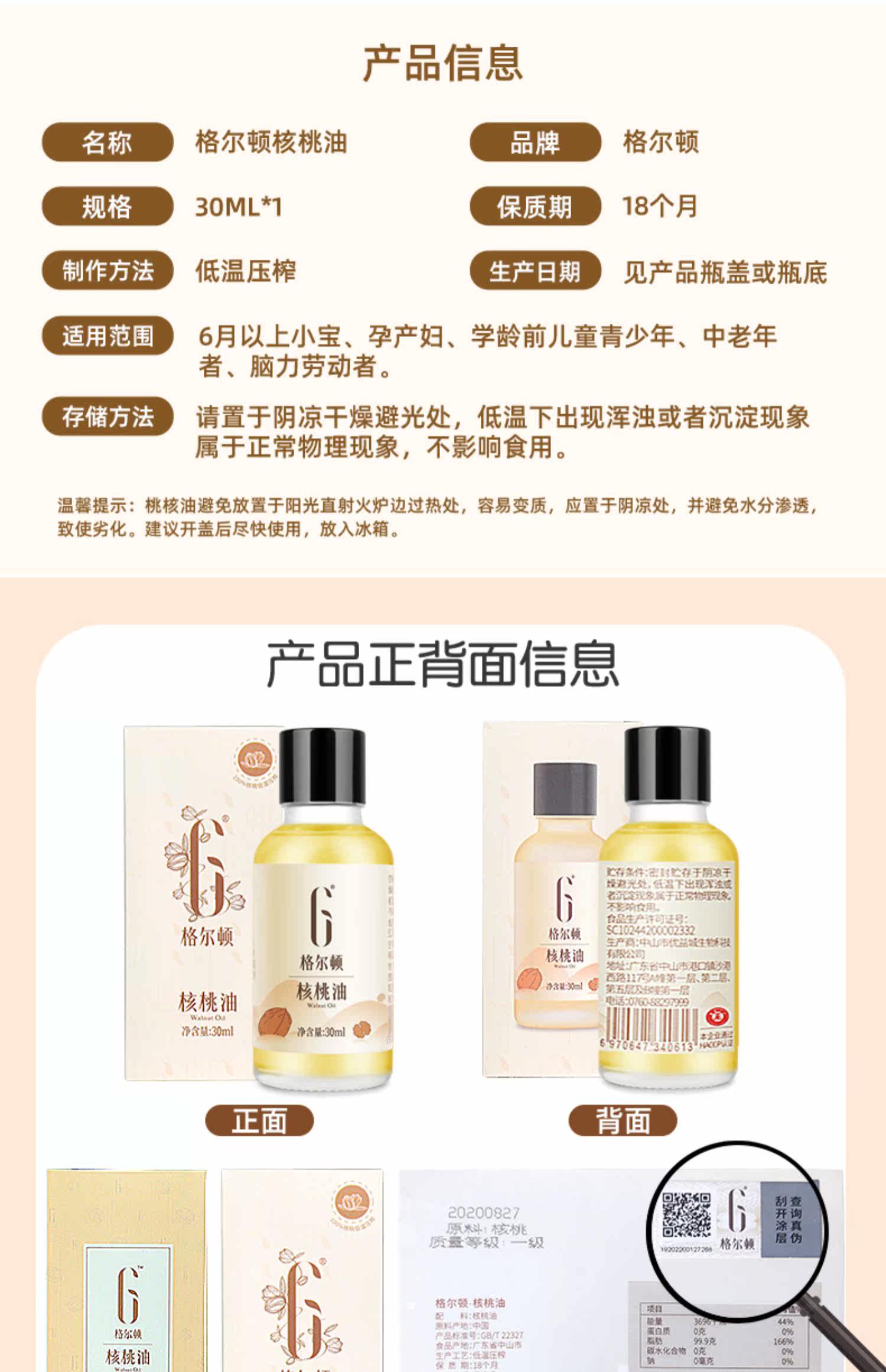 格尔顿初榨冷榨核桃油30ml