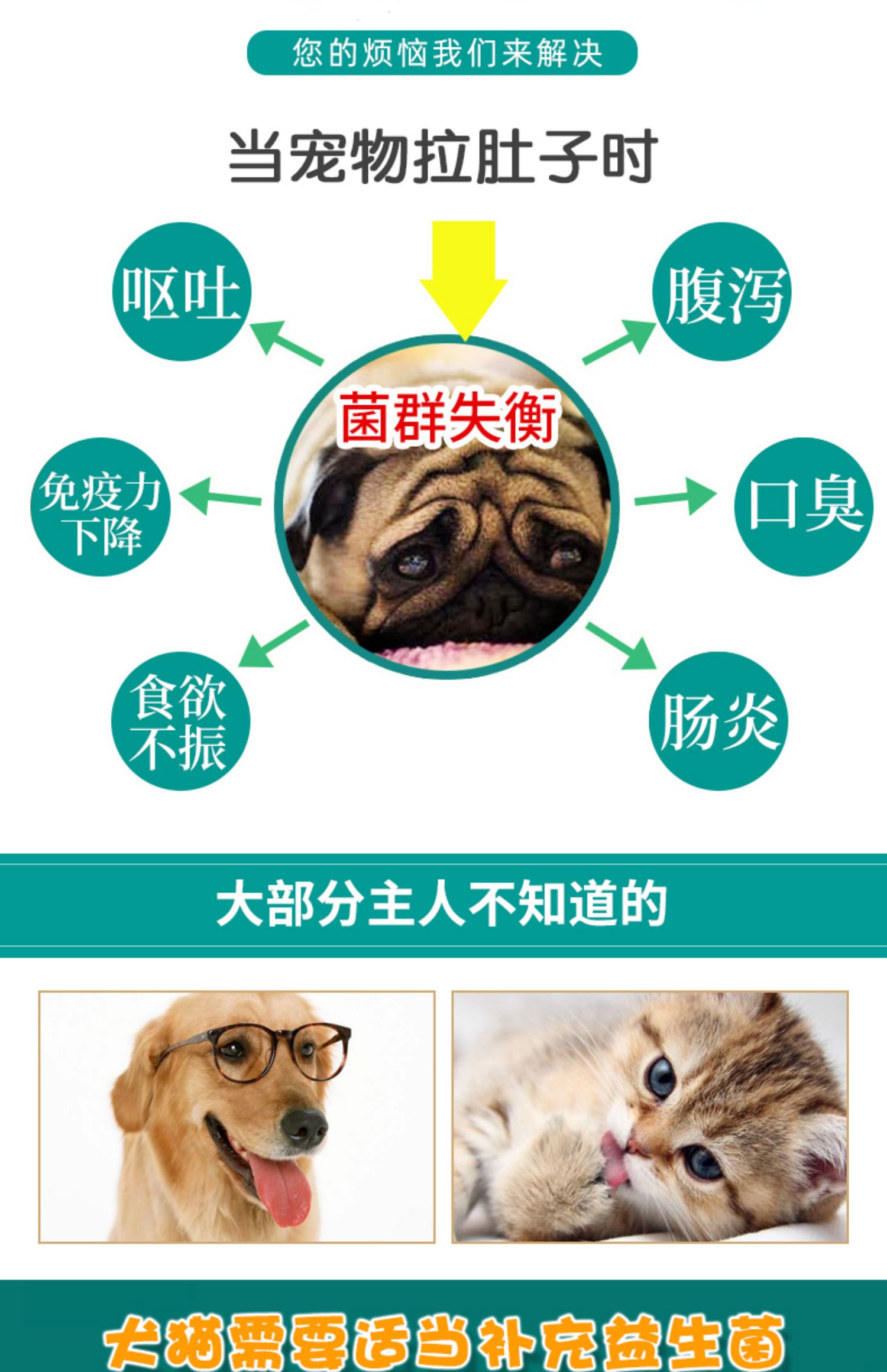 【买二送一】狗狗益生菌调理肠胃消化,冻干菌粉,定植肠道能力,有效解决爱宠腹泻拉稀,厌食呕吐,食欲不振,消化不良等症状。