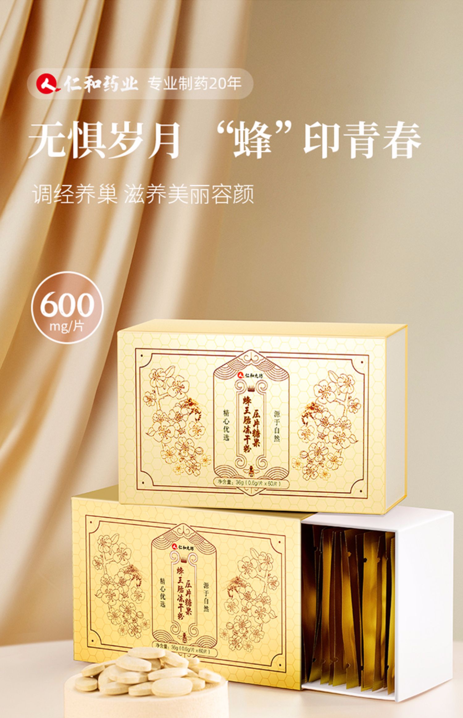 【冻龄女神赵雅芝推荐~】仁和大牌蜂王胎冻干片,自然资源,丰富营养,呵护女性,容光焕发,对神经衰弱、内分泌失调、色衰具有好的食疗作用,买来送自己,送妈妈也是很好的!
