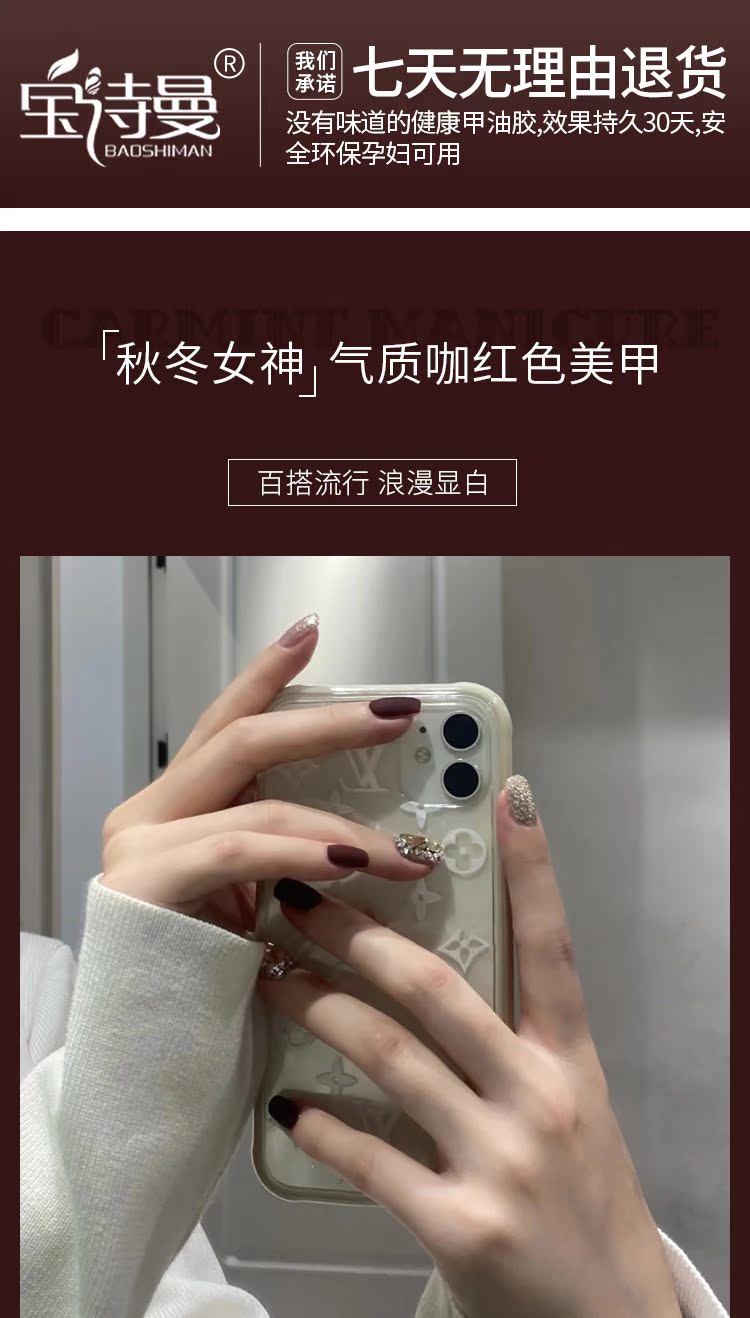 几十种款式!一个价!绿色环保原料,无刺激气味,不伤甲更健康,色彩亮丽,防水防翘,搭配美甲灯使用烤干,持久不掉色,一笔成型,新手也能轻松驾驭!