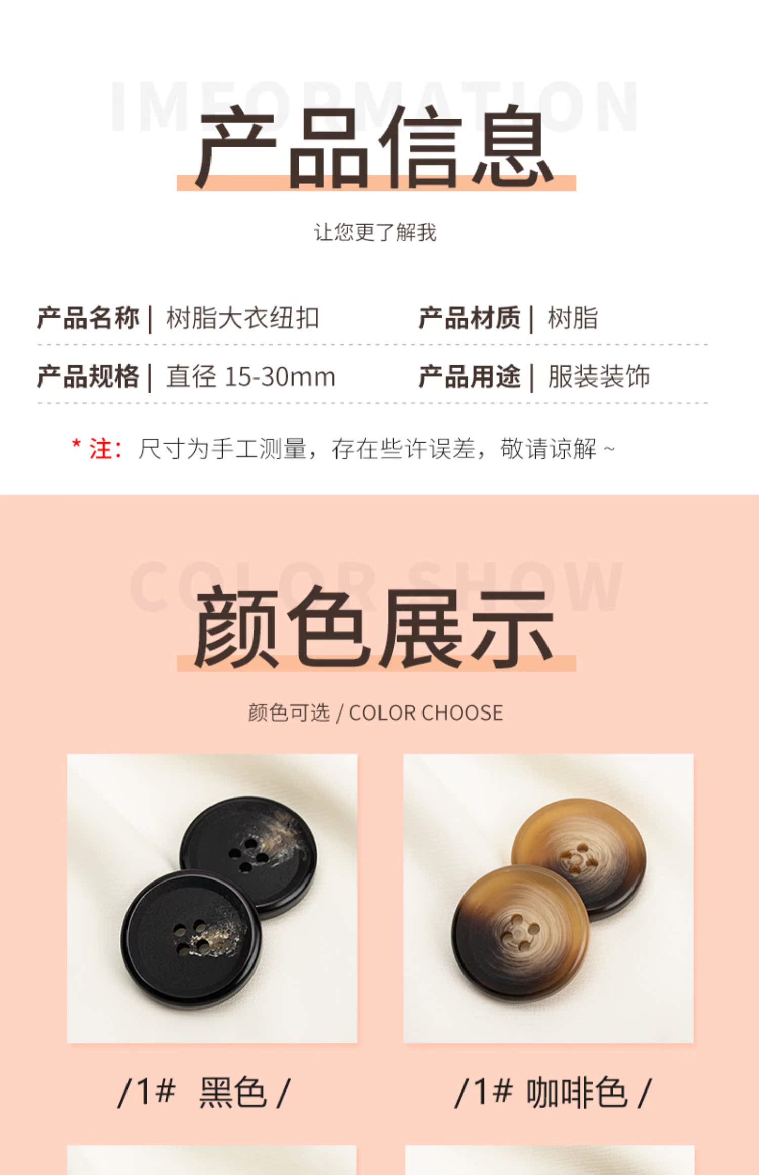 扣子的尺寸很齐全,可以根据需要拍。风衣西装大衣什么的都可以用上,也送了针线,很贴心,纽扣质感很好,包装到位,设计比较独特.
