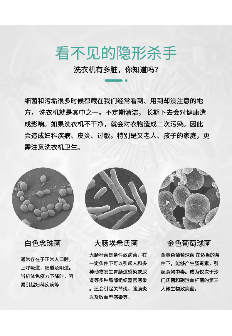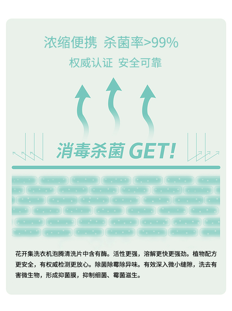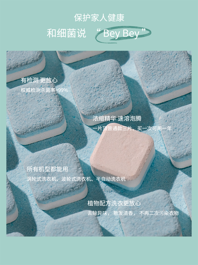 消毒杀菌去渍神器,除了清洁,还能杀菌消毒,温和配方,保护家人,12片一次用一片就够了,给洗衣机一次”洗白“机会!!