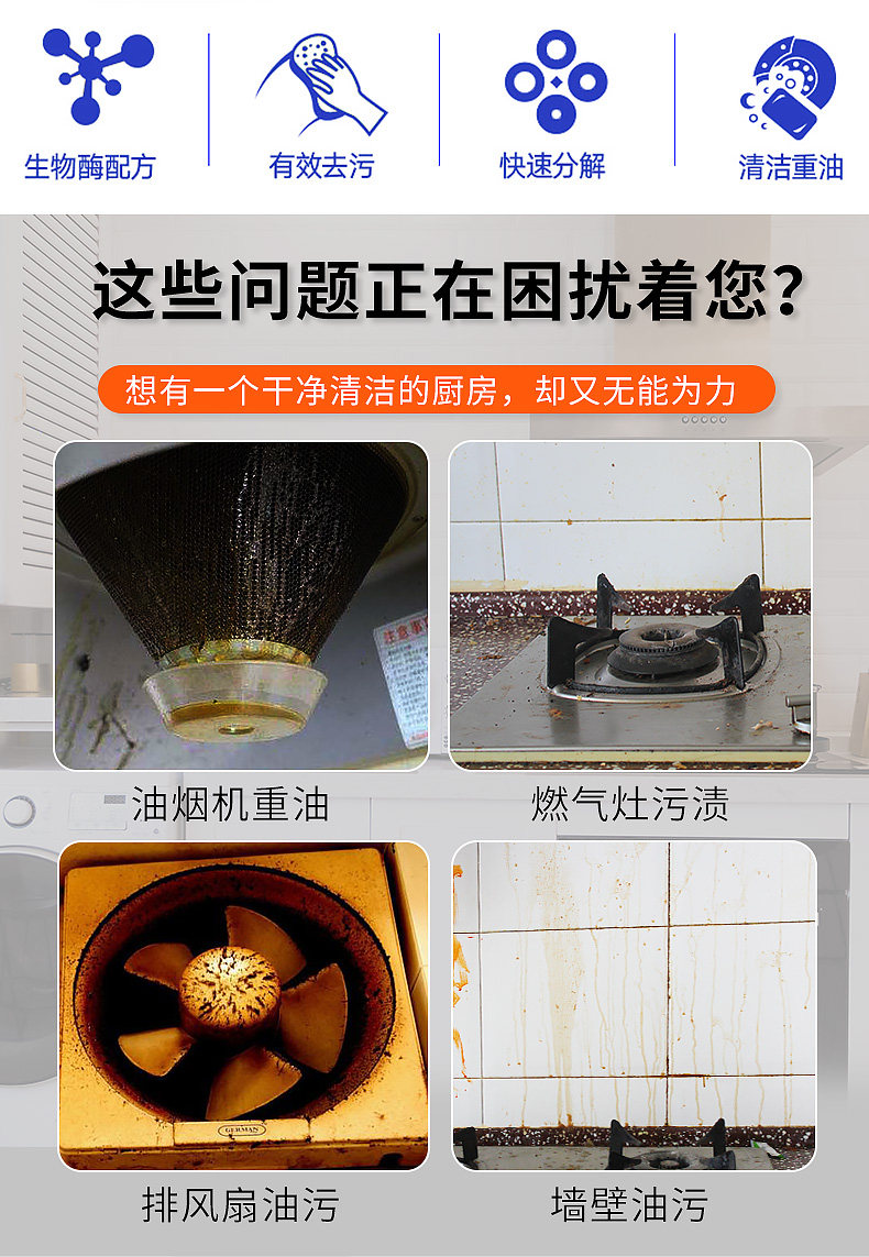 强力去油去污,瓦解顽固污渍,洁净如新,温和不伤手,居家清洁好帮手,让厨房清洁更省心省力,效果好到不多说,强烈推荐!