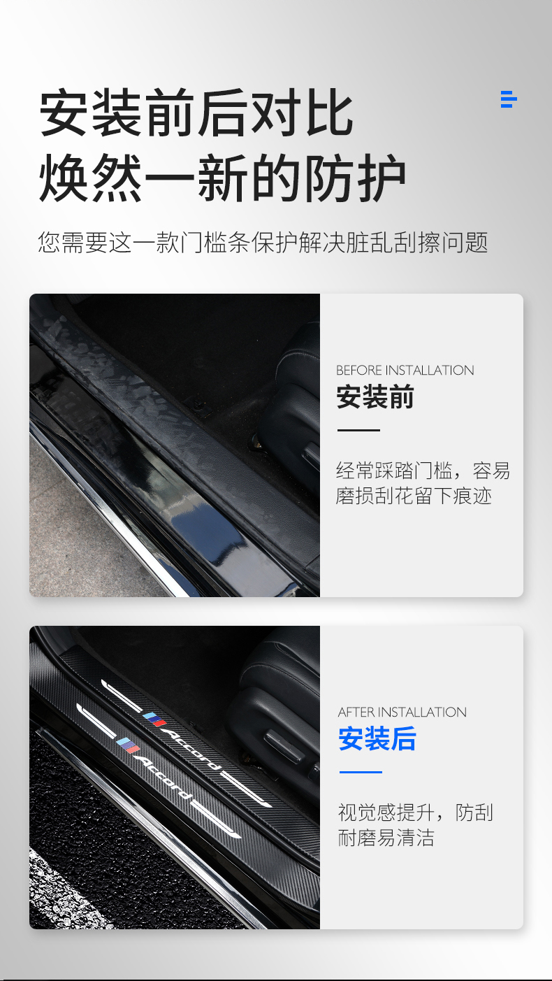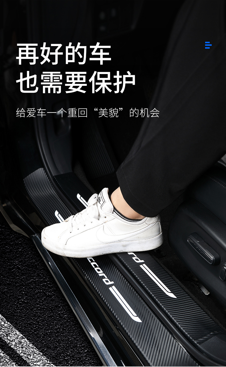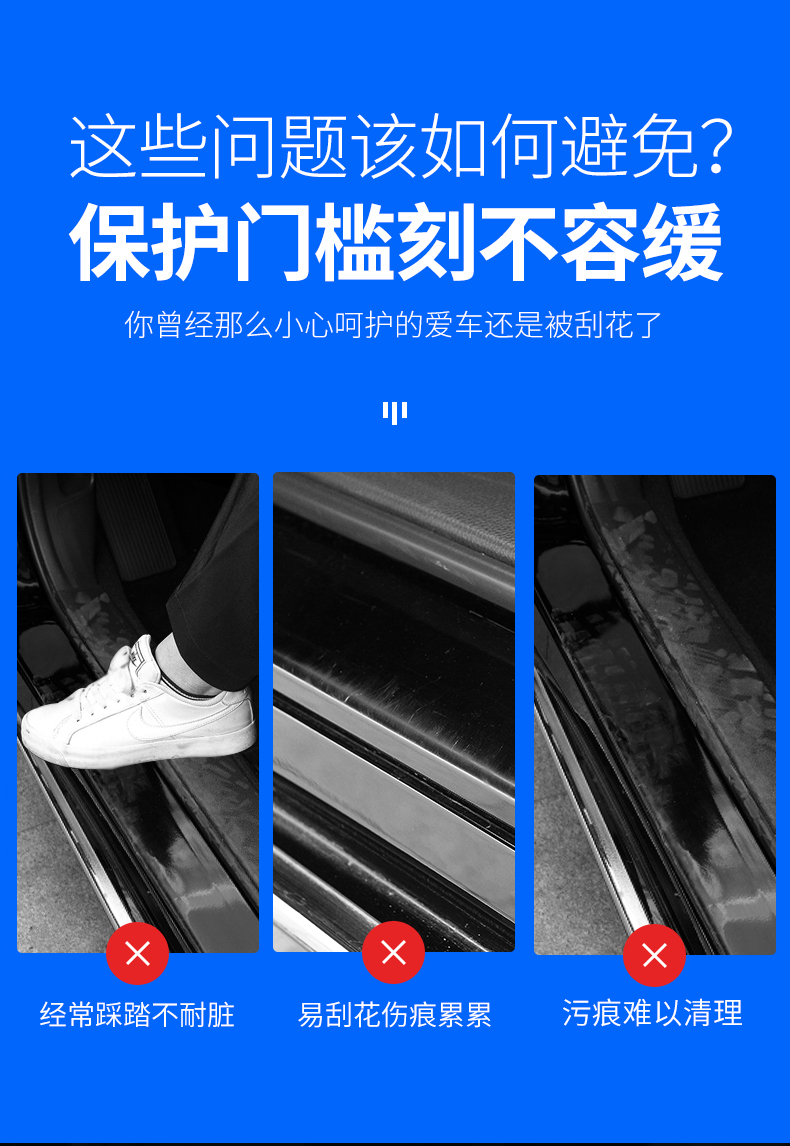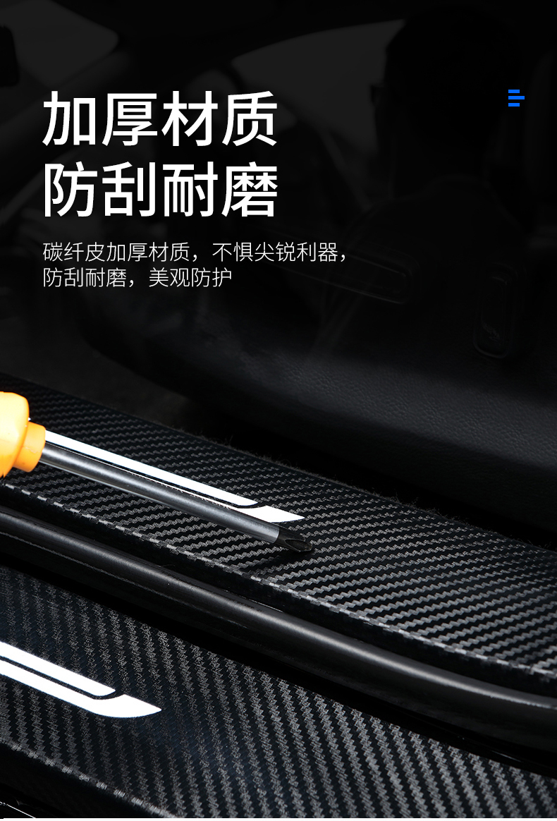 5cm宽,2米长,四个门槛足够用,汽车门槛条碳纤纹防踩贴,擦车门脚踏板防护条保护膜通用改装饰,防水材质,耐磨防刮。【赠运费险】