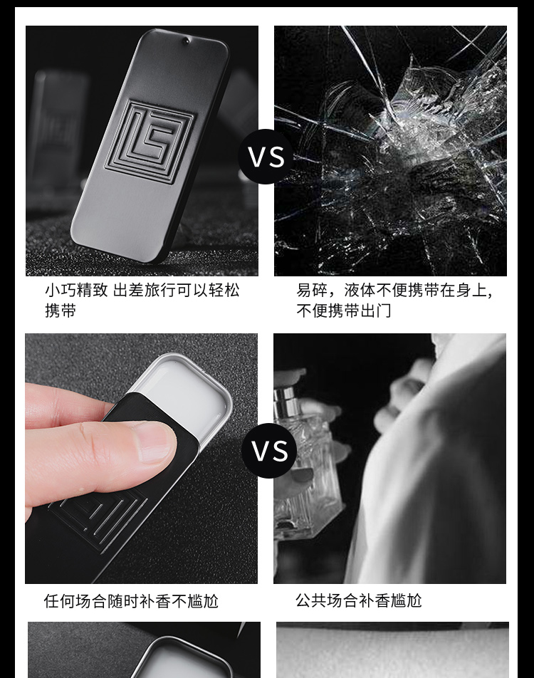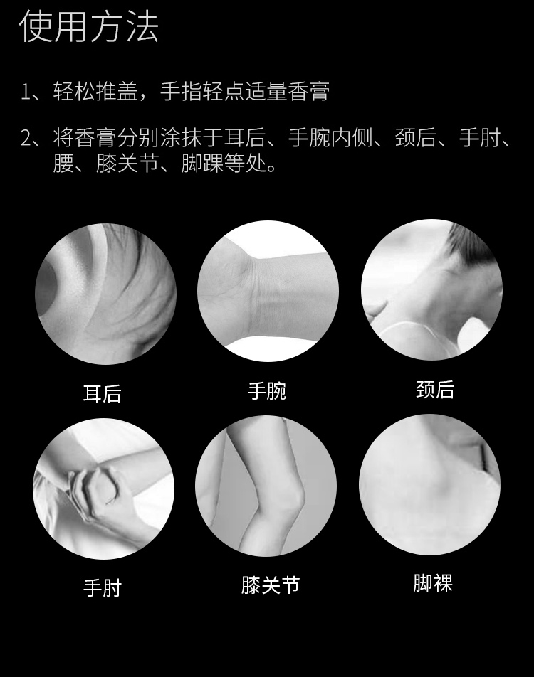 固态锁香,精致外盒,耐摔防洒漏,留香更持久,更温和,滑盖即用,美感十足,小巧贴身随行无负担,随时补香,任何场合随时涂抹不尴尬~